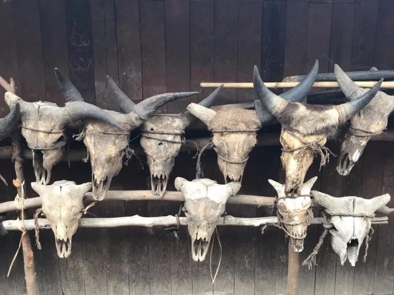 벽면에는 사냥으로 잡은 야생동물 두개골들이 진열되어 있었는데, 동물 두개골은 액운을 쫓아주고 행운을 가져다준다는 믿음이 있다 한다.
