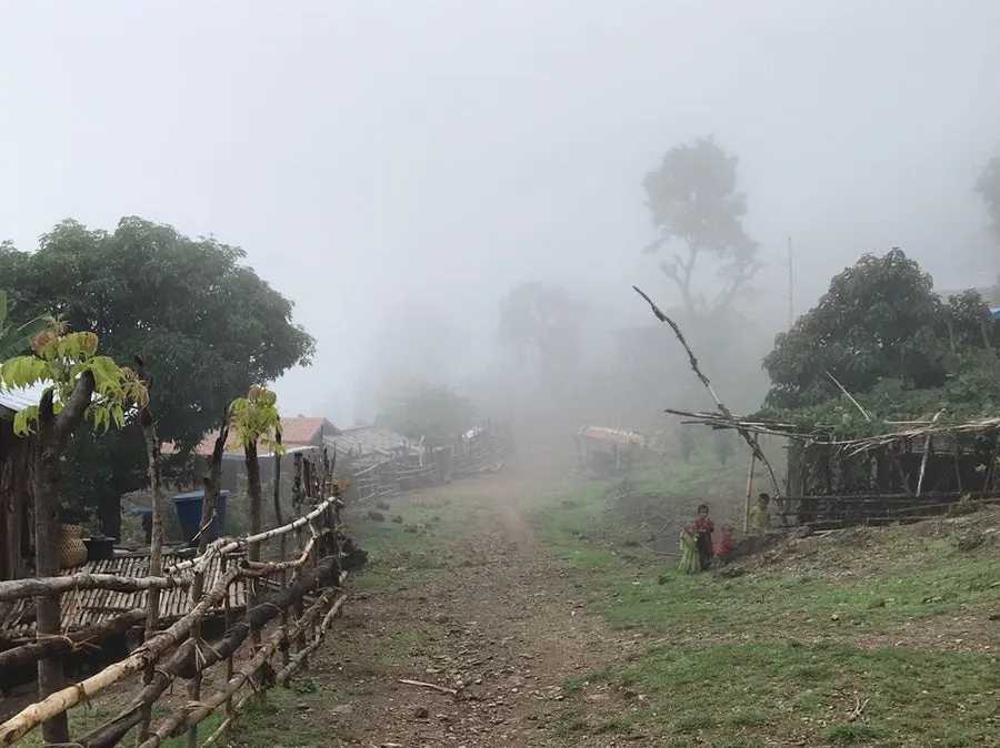 아슬아슬한 길을 곡예하듯 약 1시간을 달려 첫 번째 문족 마을에 도착하였고, 마을은 온통 산안개로 덮여 있어 앞도 잘 보이질 않았고 사람도 보이지 않았다.