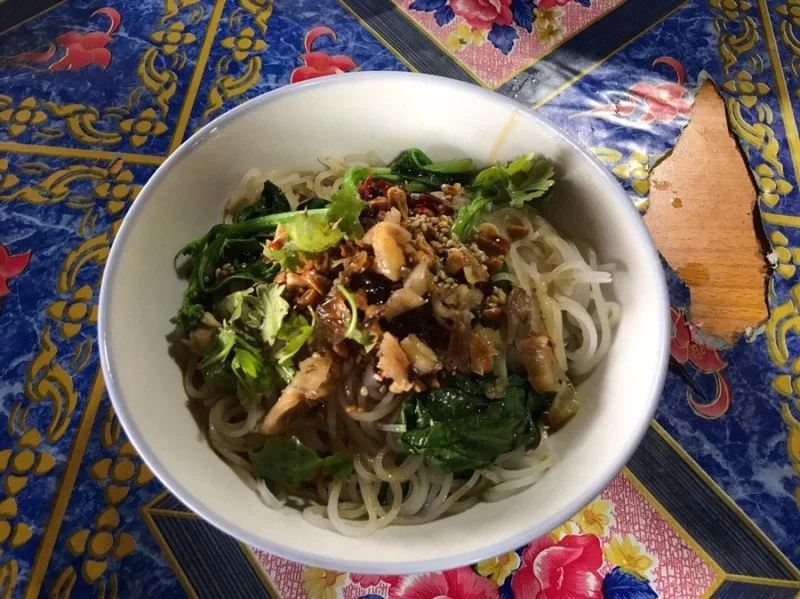 가이드와 마을에 있는 친족 식당에서 전통 국수로 아침을 해결하였고 문족 마을엔 가게나 식당이 없다며 점심과 마실 물을 준비하여 가이드의 오토바이 뒷좌석에 타고서 출발하였다.