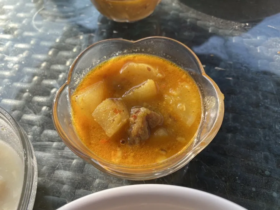 친구 부인이 만들어준 닭이나 염소가 아닌 무우로 만든 커리였는데 의외로 맛이 좋았다.