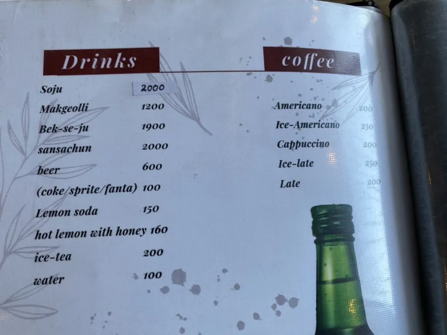 가격도 식당에서 한 병에 3~4천 원 정도다.