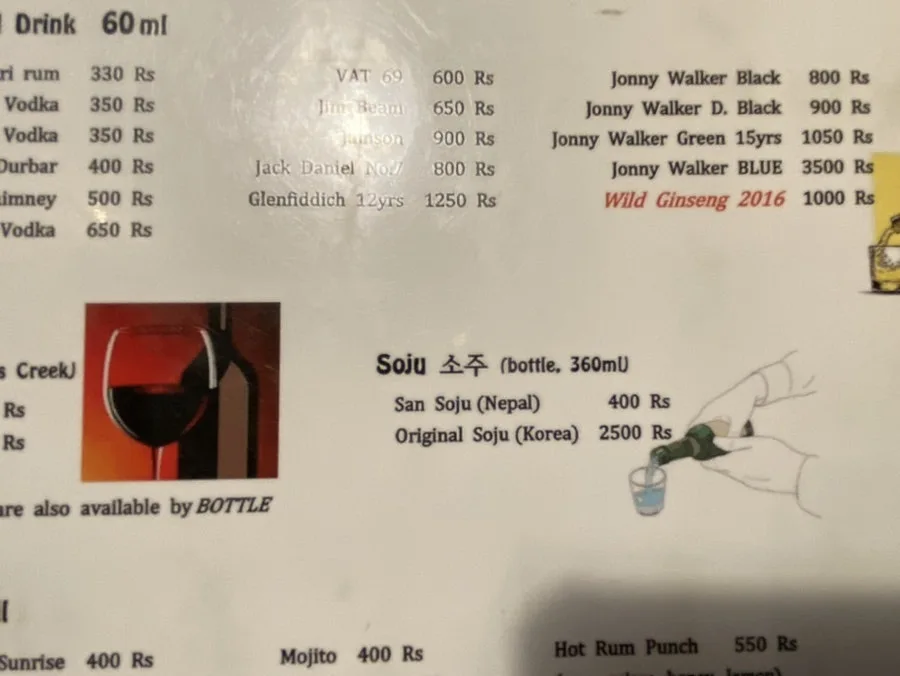 네팔은 한국 소주의 가격이 너무 비싸다.