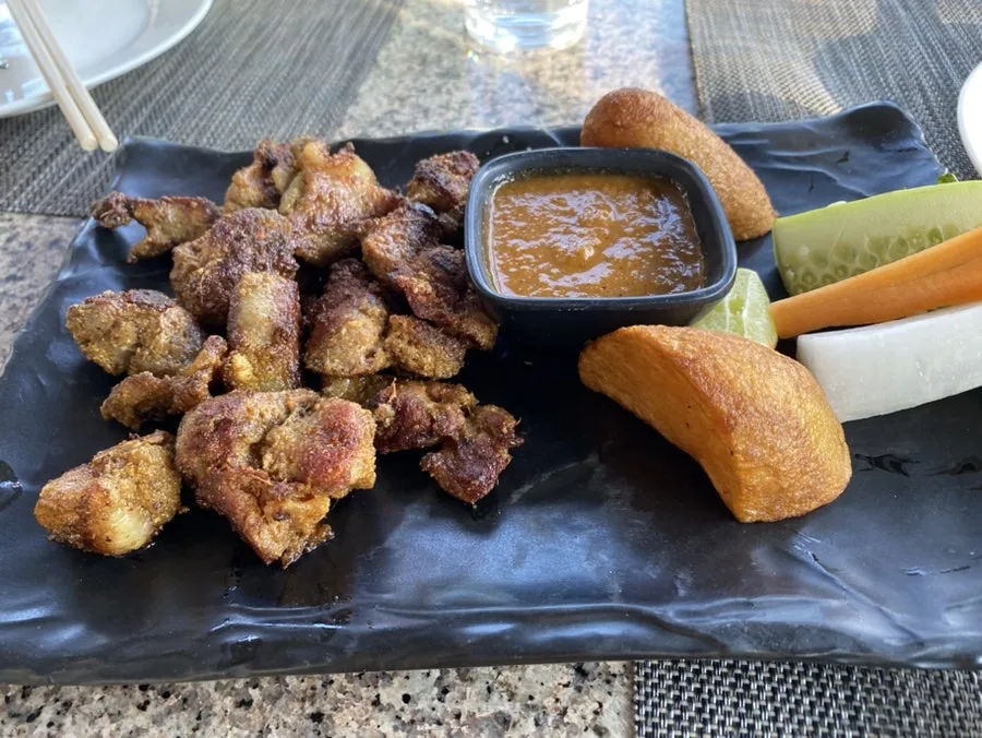 카레 양념을 입힌 후 숯불에 구운 염소고기구이가 입맛에 잘 맞으며 맛도 있다.