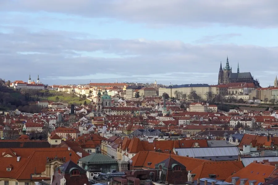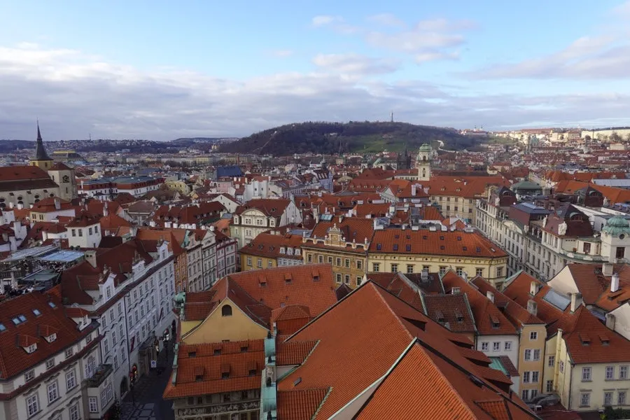 엘리베이터를 타고 전망대 꼭대기에 도착하자 차가운 공기가 얼굴을 스쳤고, 눈앞에는 프라하의 전경이 펼쳐졌다.