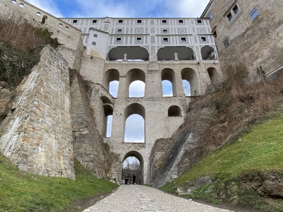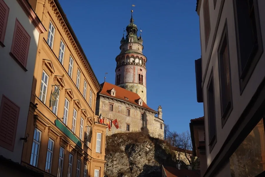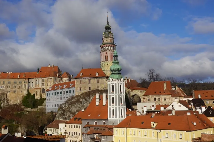 하늘은 잔뜩 흐렸지만, 우뚝 솟아 있는 체스키 크룸로프 성탑은 여전히 위풍당당했다.
