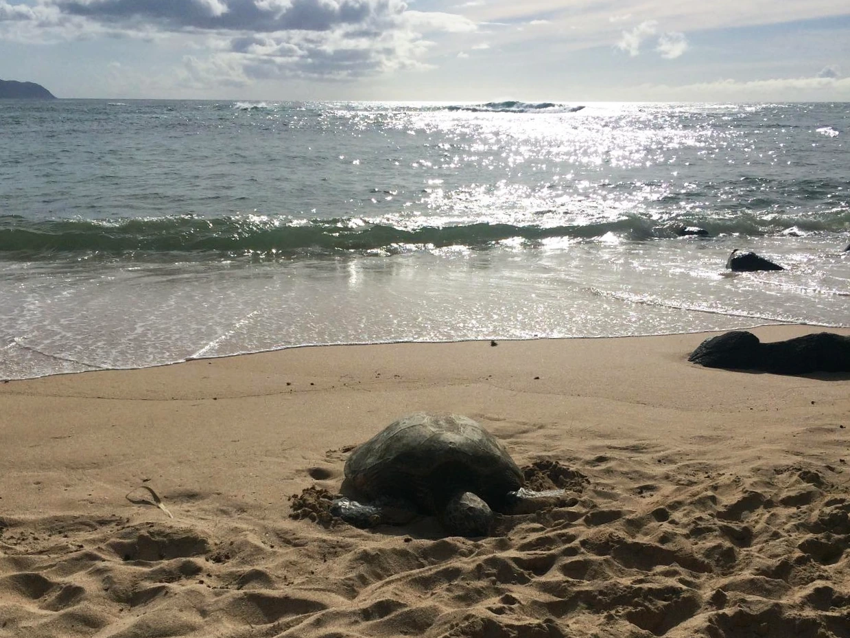 처음 바다거북과 수영을 하고