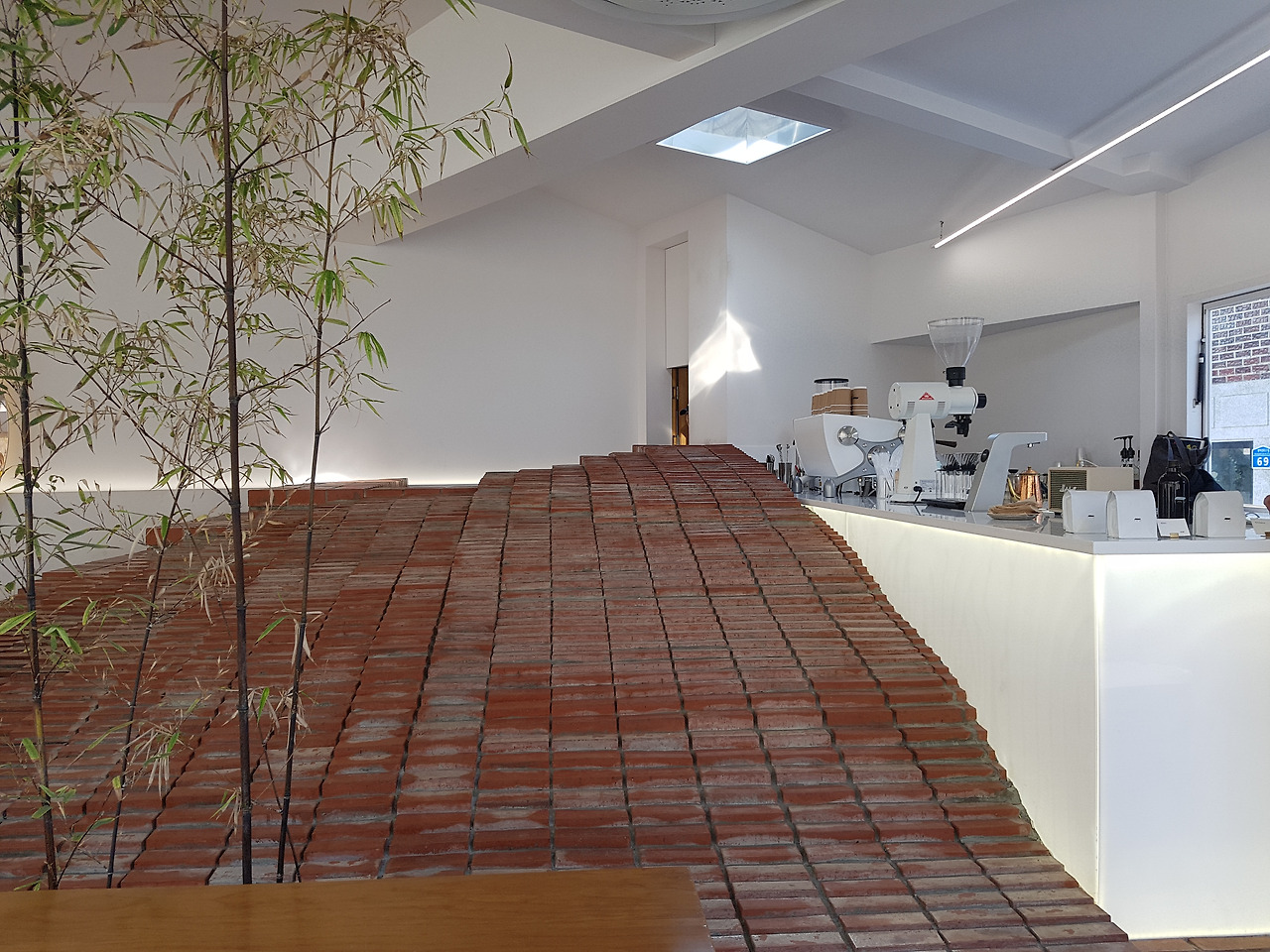 평수는 10평 남짓되어 보인다. 작은 카페에 좋은 머신들을 다 넣었다. 슬레이어에 말코닉이라니... 아반떼 한 대 값은 나오겠다. 이런 작은 카페에 저 정도 되는 머신을 넣은 것만 보더라도 '우리는 커피에 엄청 신경 쓰는 곳입니다.'를 온몸으로 표현하는 격이다.