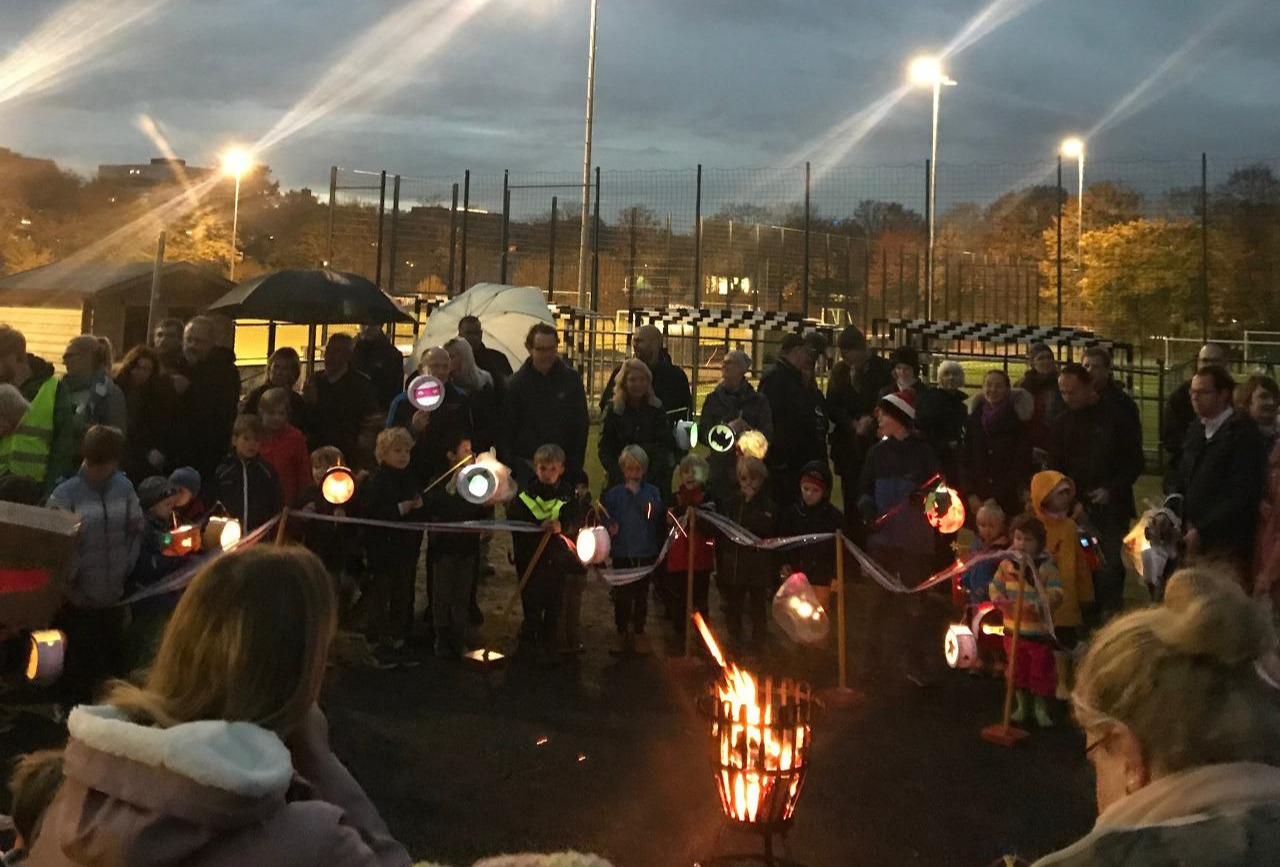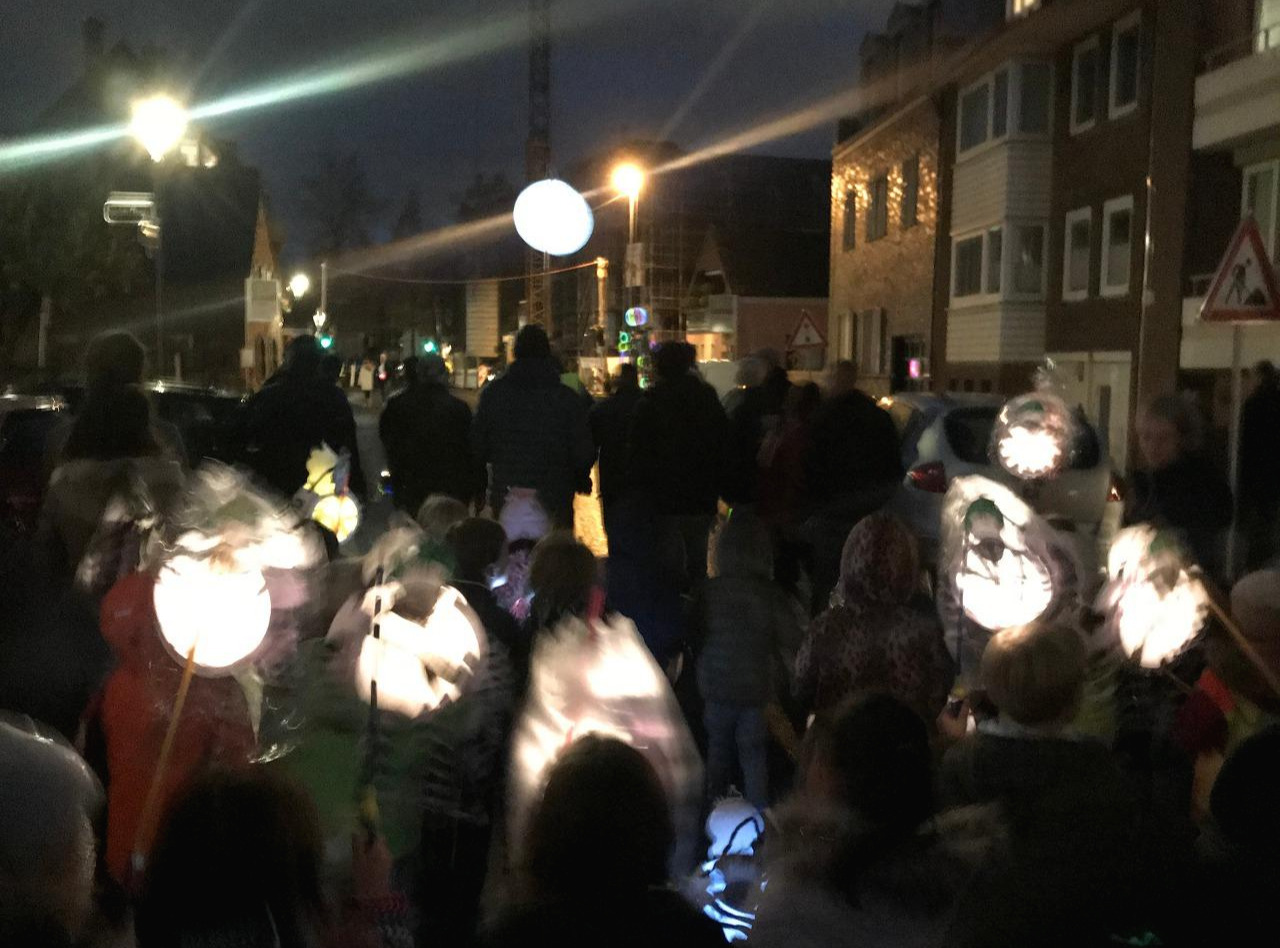 상트 마틴 행사 날 오후 5시 반쯤 아이들과 함께 어린이집으로 갔다. 11월의 짧은 해는 이미 져서 어둑어둑해져 있었다. 사람들은 벌써 도착해서 어린이집 밖에 서 있었다. 어린이집 원장의 간단한 인사말이 끝난 뒤 곧바로 행진이 시작되었다. 아이들은 팔 길이 정도의 막대에 소형 전구를 매단 후 자신들이 만든 갓을 씌워 등불을 만들었다.