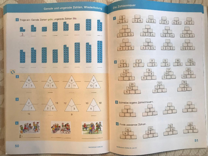 반면 독일의 초등학교 1학년 수학은 숫자와 그림과 기호가 대부분이었다. 10 이하 숫자의 더하기, 빼기를 계속해서 반복하고, 이를 바탕으로 추론이 이루어지는 방식이었다. 요즘 아이가 학교에서 하는 것은 3단 피라미드 모양의 숫자 칸 중 빈칸을 채우는 것이다. 한국식 수학 공부를 그렇게 싫어하던 아이가 독일 초등학교에서 가장 좋아하는 과목이 수학이라고 했다. 놀라울 따름이다.