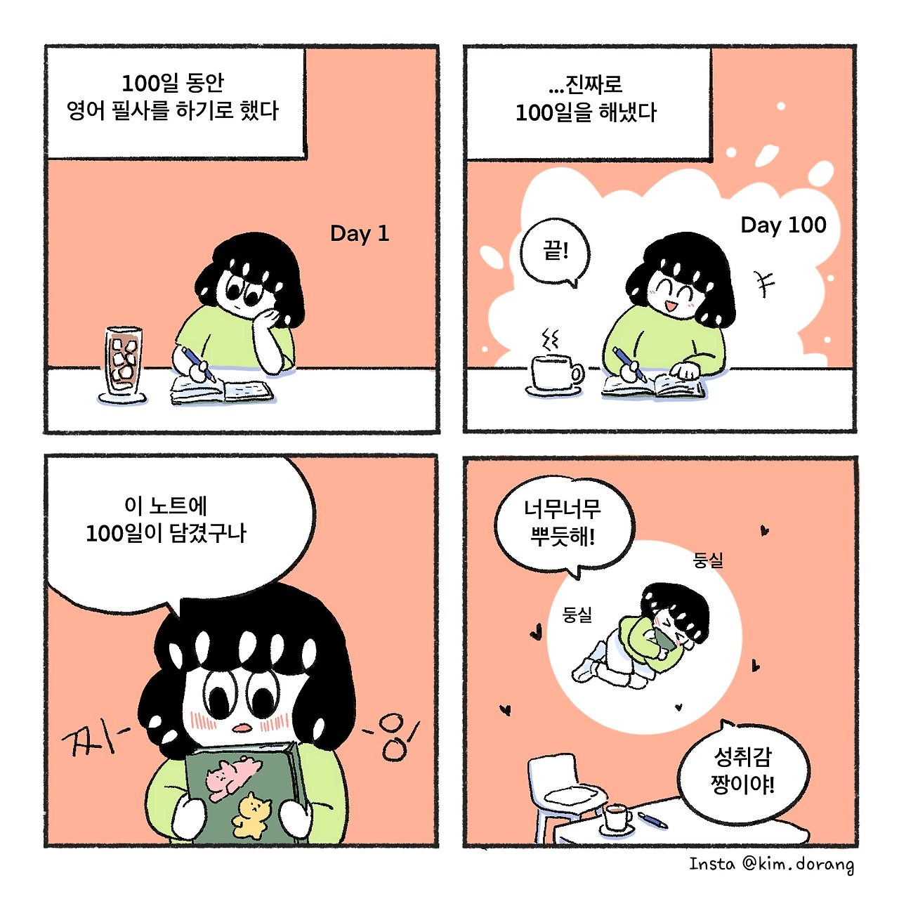 타인의 요청이나 실질적인 필요가 아닌, 순수한 제 의지로 100일이나 진행한 일이라 너무나 뿌듯하네요.