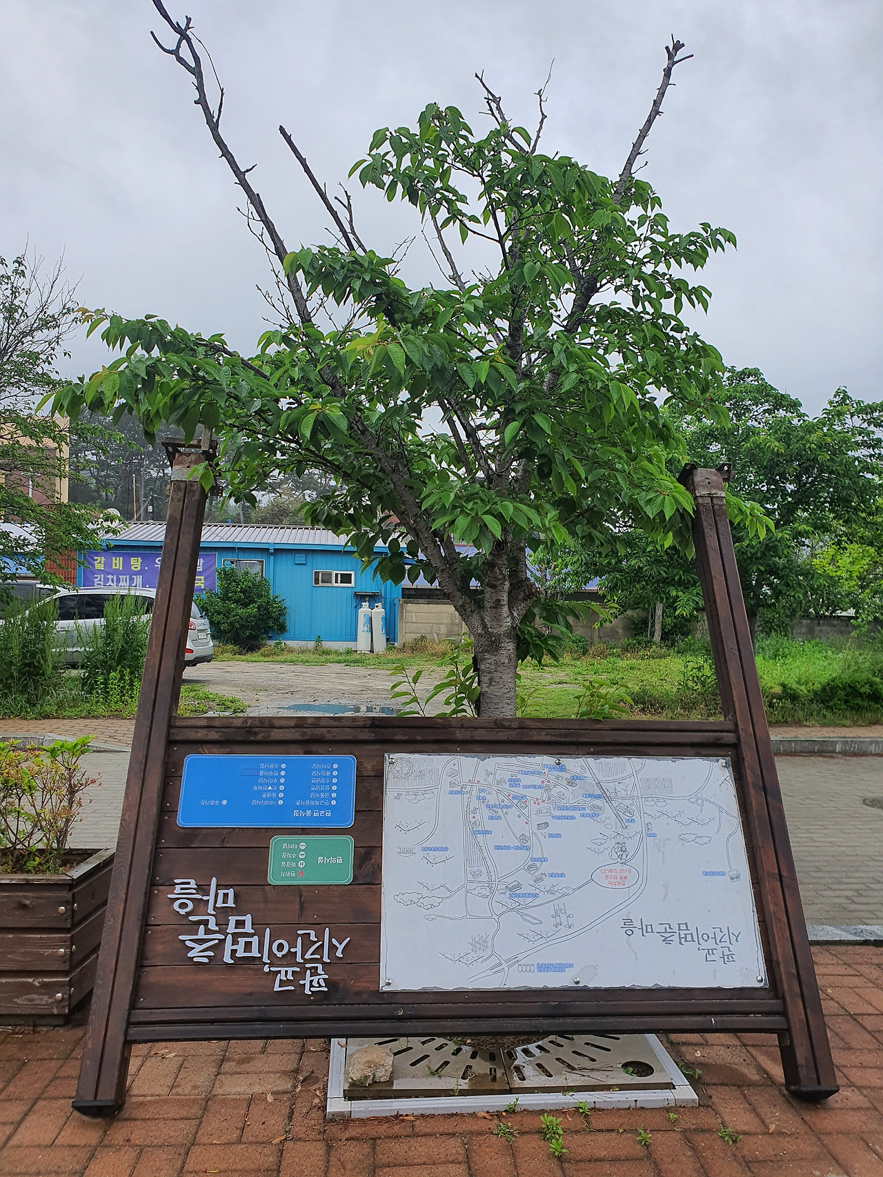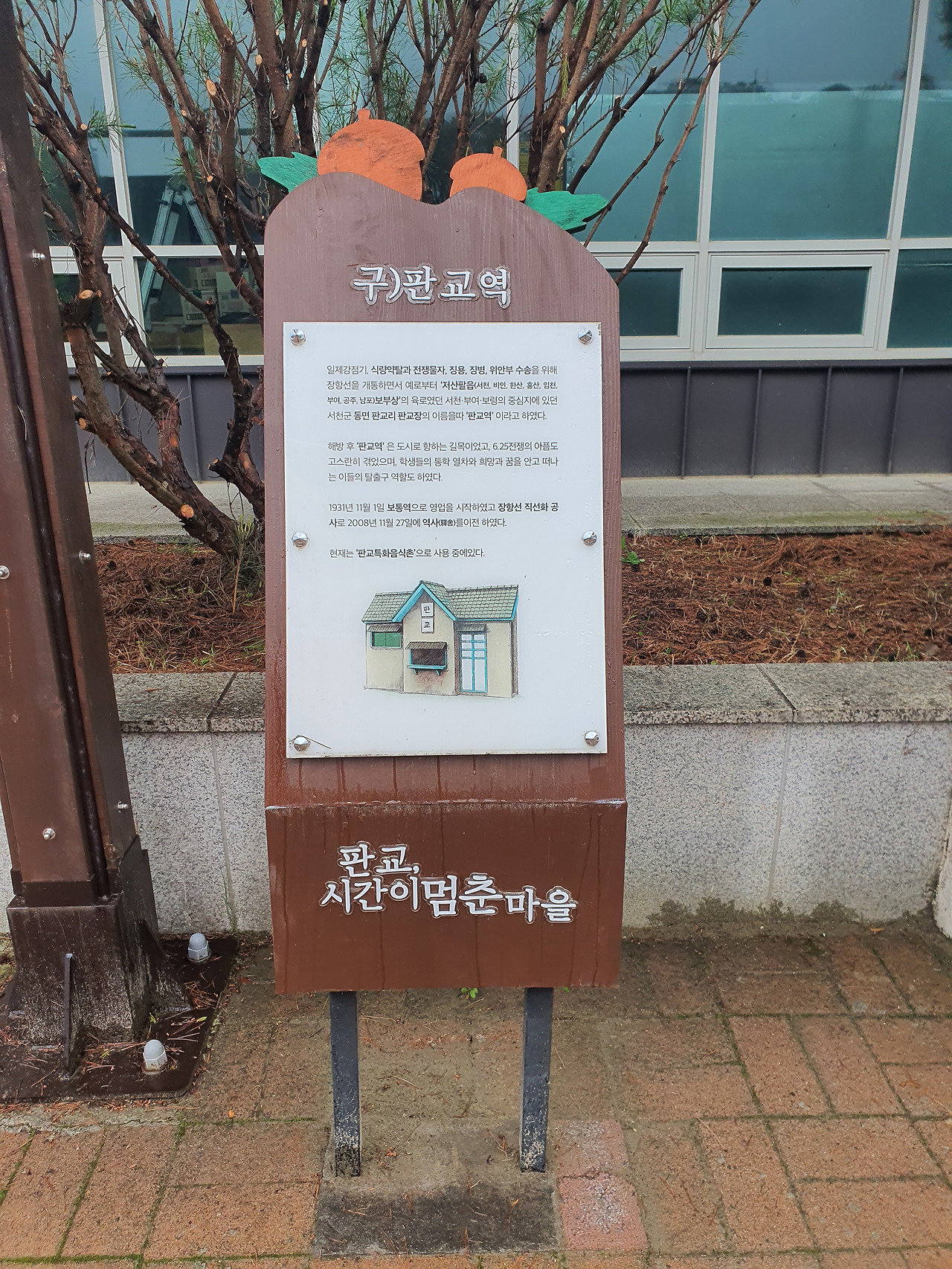 1932년에 심었다는 역 앞 소나무를 돌아서 나오다 보니 거꾸로 세워둔 안내판이 있네요. 거꾸로 가는 시간, 뒤집어보는 세상, 그 전복적 상상요. 설마 그렇게 깊은 뜻으로 이렇게 눕혀두었을까요. 그렇지만 비바람에 뽑힌 것이더라도 이렇게 그냥 두는 것 또한 나는 좋았습니다.