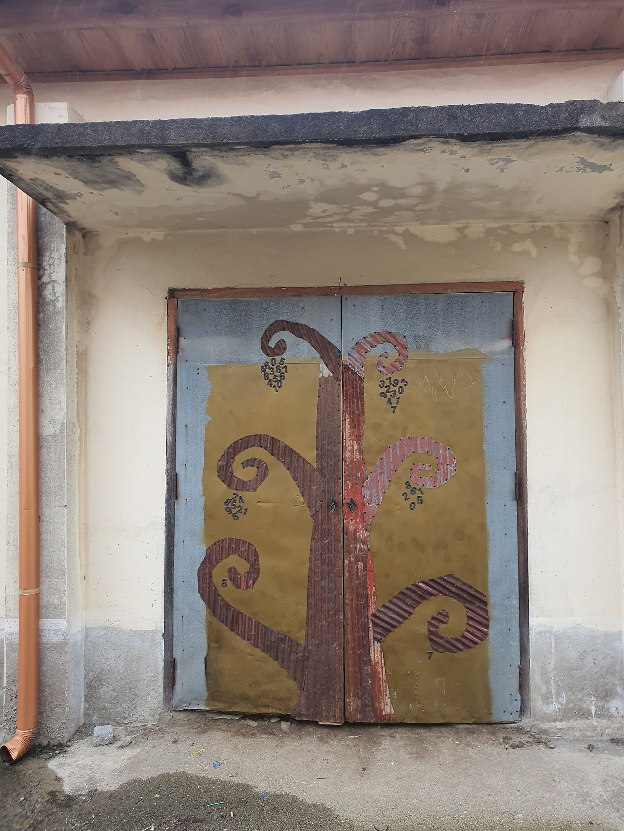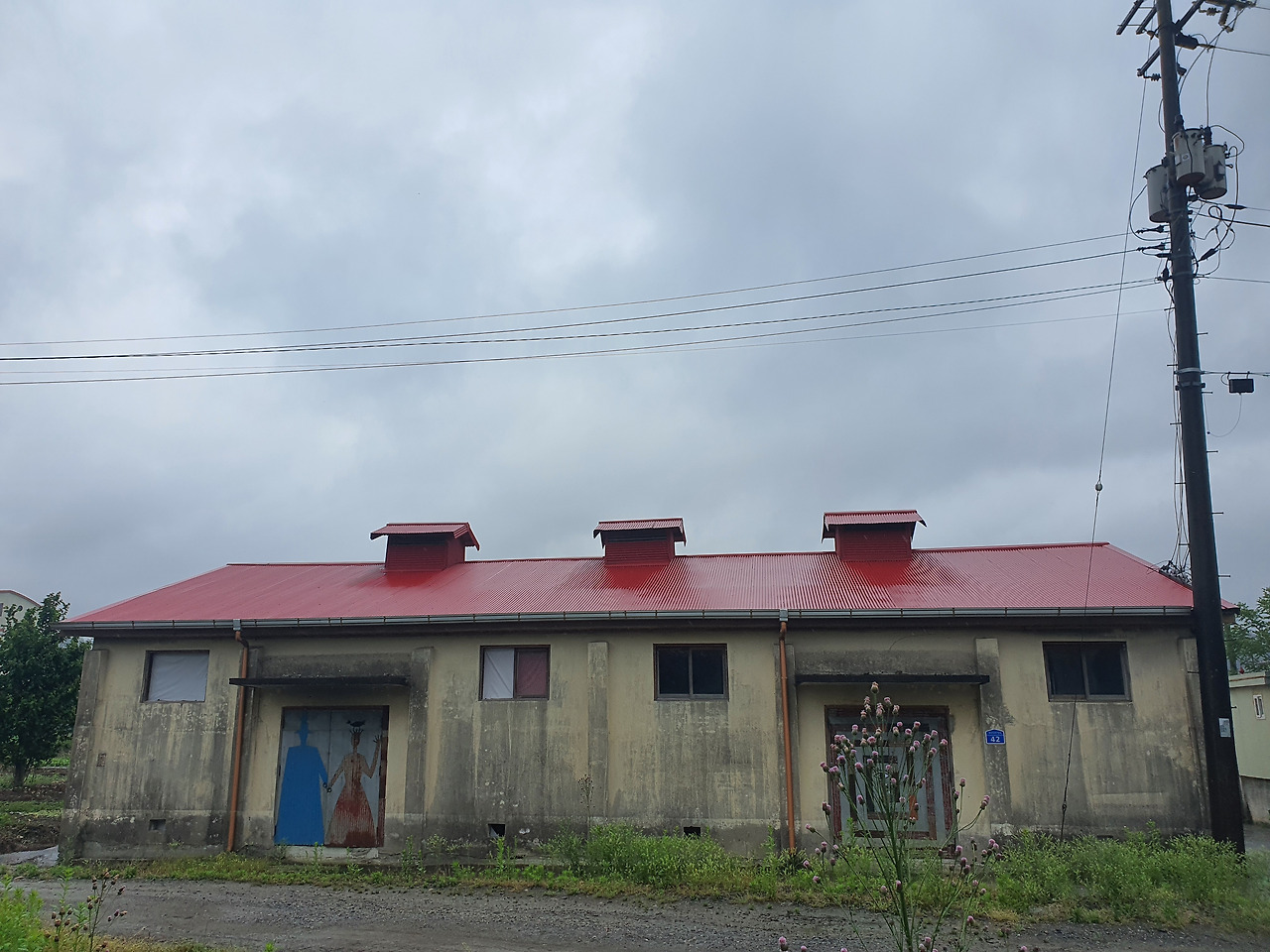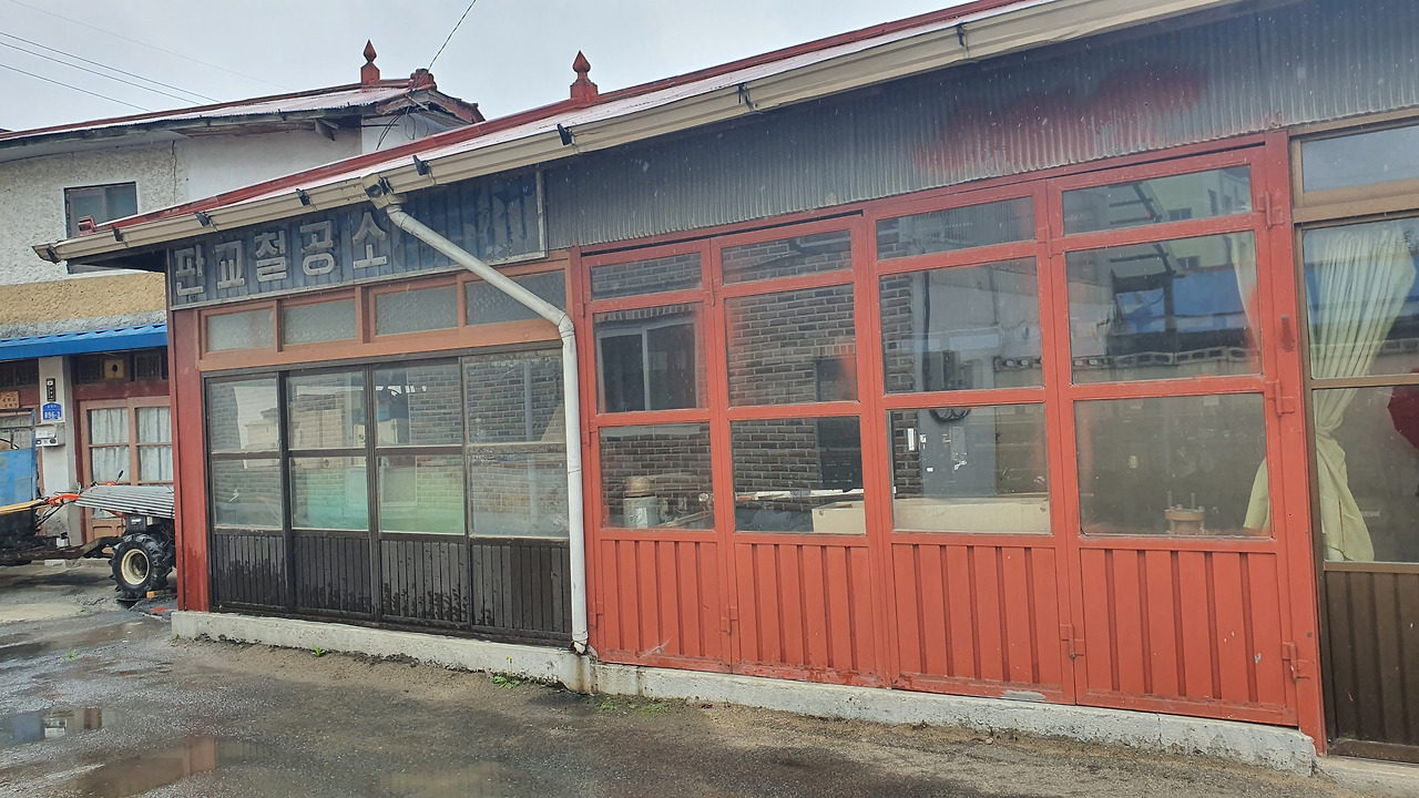 내가 특히 눈여겨 본 집은 보건지소 뒤 판교시장 옆에 있는 빨간 지붕의 헌 창고 두 채였습니다. 제주도의 감귤저장창고나 강화도 조양방직을 떠올리게 했어요. 도시 젊은이들이 와서 작품을 만드는 공간으로 썼다는데 지금은 한산으로 옮겨가 문이 잠겨 있었습니다. 그들의 흔적만 녹슨 철문에 남아 있었어요.