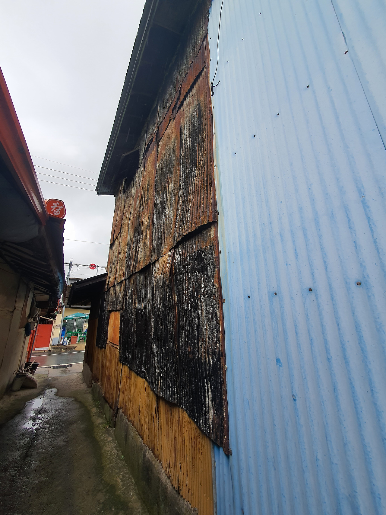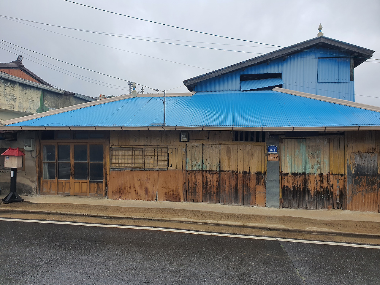 선명한 파란색과 낡은 나무의 고색이 퍽 잘 어울려 색감 자체로도 아름답습니다. 물론 현실적인 생활의 불편함은 이런 미적 형상과는 다른 심각한 문제겠지요.