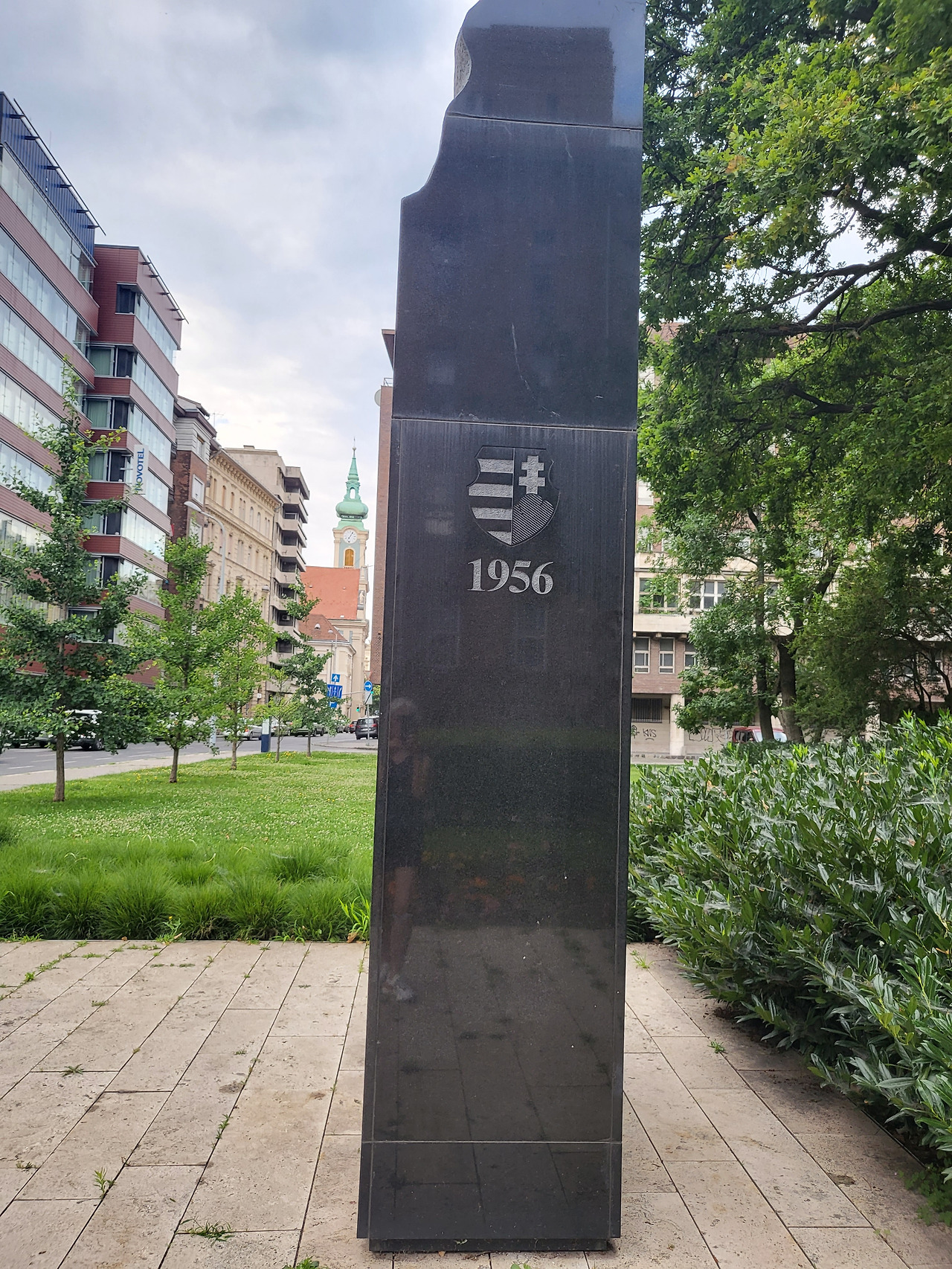1956년 헝가리 반소혁명을 기리는 기념비임을 짐작하게 한다. 자주색 띠를 두른 건물이 호텔이고 좌측 뒤로는 성언너 성당이 살짝 보인다. 특별히 구획을 짓거나 하지 않았다.