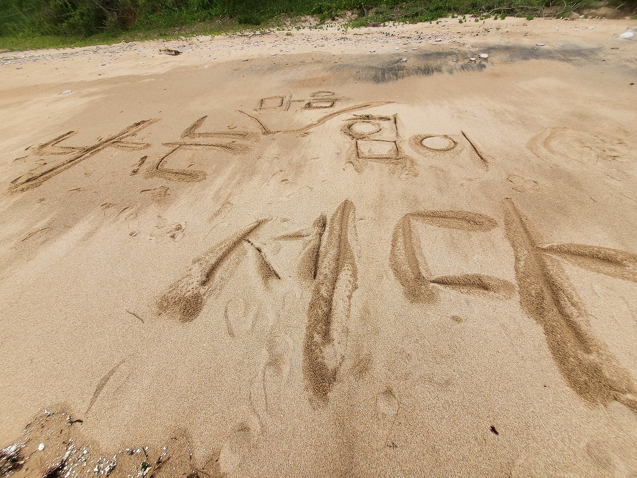 모래밭에 쓰는 글이 무슨 힘이 있을까마는 아마도 새기고 싶었던 게지. 마음 깊숙한 어디에. 새기고 맺히도록 꾹꾹.