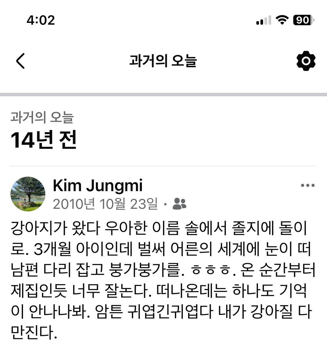 누나의 페이스북에 과거의 오늘코너에서 14년전 오늘 우리가 만났다고 알려주었어...