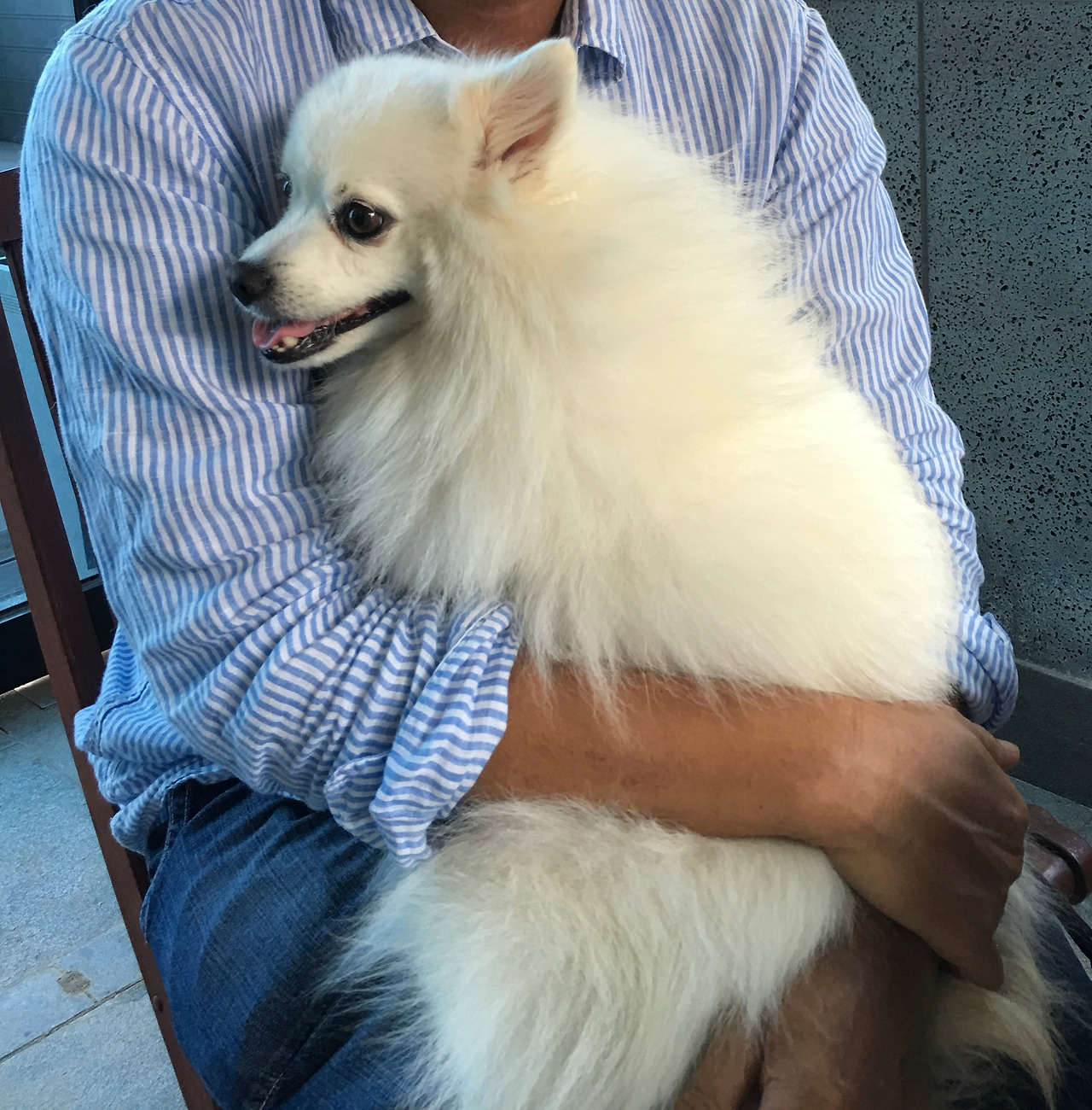 그 양반다리위에 쏙하고 올라가 개껌을 가열차게 씹었어.