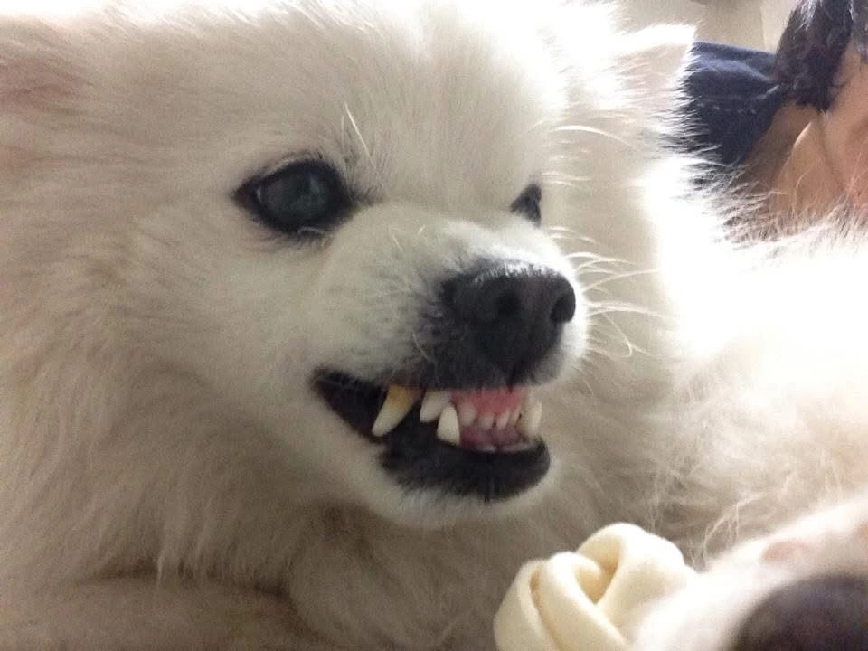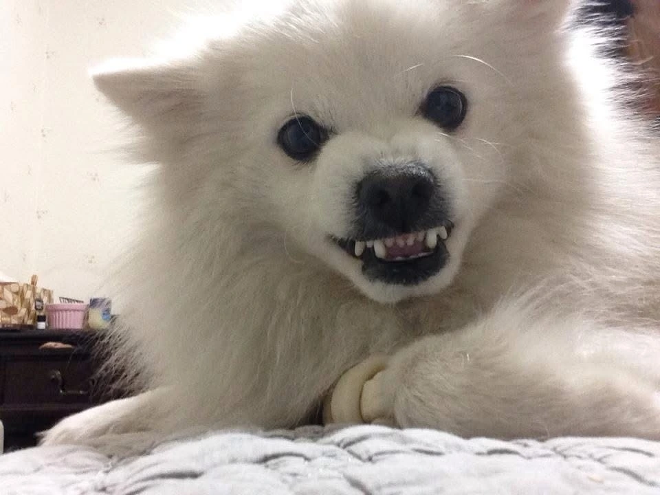 네가 개껌을 물고 있을때 누나가 마치 껌을 빼앗으려는 악당같이