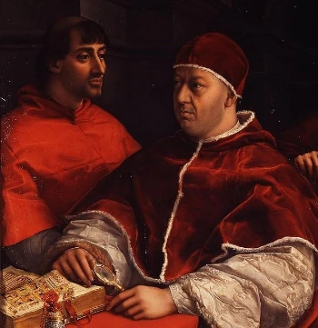 추기경 줄리오 데 메디치(왼쪽. 훗날 클레멘트 7세가 됨)와 교황 레오 10세
