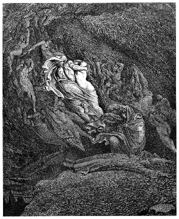 장 도미니크 앵그르 <파올로와 프란체스카의 불륜을 발견한 잔치오토>, 구스타브 도레 <지옥에서 벌받는 프란체스카와 파올로>