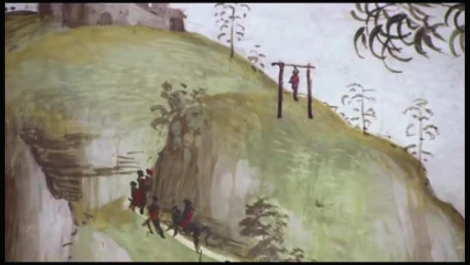 발리오니 예배당 3연작 프레스코의 반란을 묘사한 원경 세부