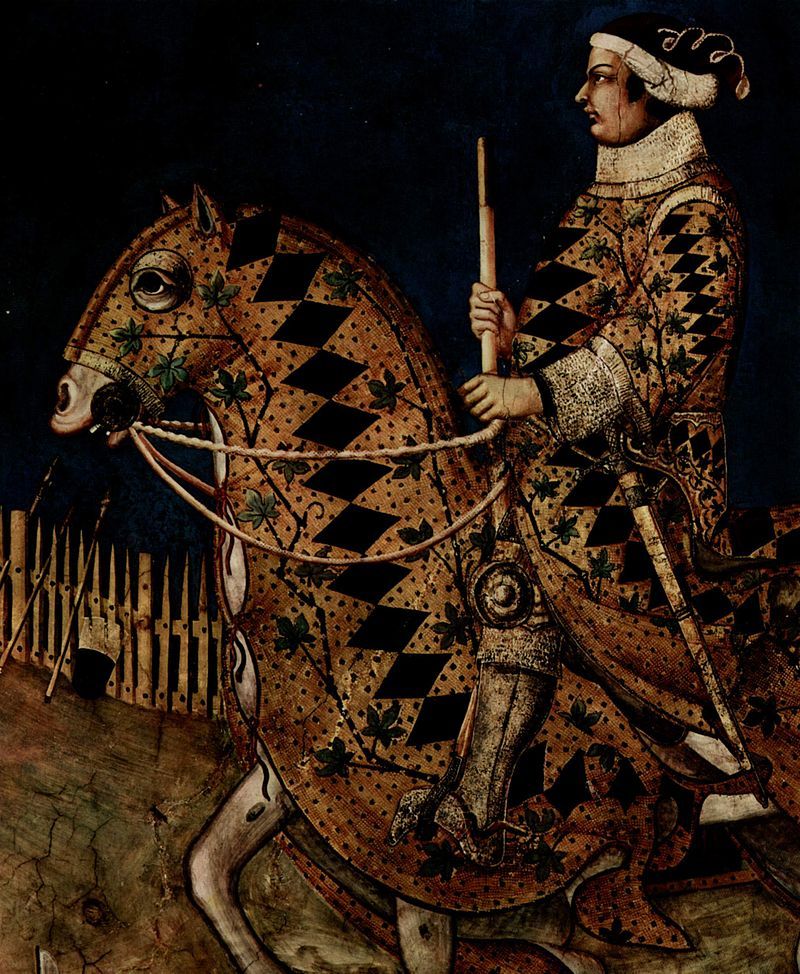 평범한 세속인 귀도리치오 다 폴리아노가 종교와 전혀 관련 없는 맥락 속에 주인공으로 묘사됐다는 점도 중요하지만, 그에 못지않게 그가 그림 속에서 말을 타고 있다는 점도 주목해야 한다. 고대 로마시대부터 서양 미술에서는 특정 인물의 높은 권위와 존엄을 상징적으로 표현할 때 기마 인물상, 기마 인물도라는 형식을 사용했다. 역으로 말하면 드높은 권위를 널리 인정받고 막강한 권력을 부여받은 인물만이 말을 탄 포즈로 묘사될 자격을 지녔다는 뜻이다. 그래서 로마시대 기마상의 주인공은 모두 황제들이었으며, 제국이 무너진 뒤에는 수 백 년간 어느 누구도 로마 황제들만큼의 권위를 누리지 못했기 때문에(세속인에 대한 숭배를 금하는 교회의 권위가 오랫동안 세속 정치권력의 권위를 능가했거나 그와 거의 대등했던 탓도 있다) 선뜻 자신의 혹은 다른 누군가의 기마 인물상을 제작할 수 없었던 것이다. 시모네 마르티니의 <몬테마씨 공략도>는 바로 이 점에서도 당대 미술의 관행을 깨뜨린 혁신이었다. 일개 용병대장을 어느 왕이나 황제 못지않은 위엄을 지닌 인물로 칭송하는 동시에 그가 자신들의 군대를 이끌고 거둔 승전을 돋보이게 함으로써, 도시국가 시에나가 일궈 온 세속의 성취들이 종교적 가치 못지않게 중요하다는 메시지를 미술로 표현한 시도이기 때문이다.