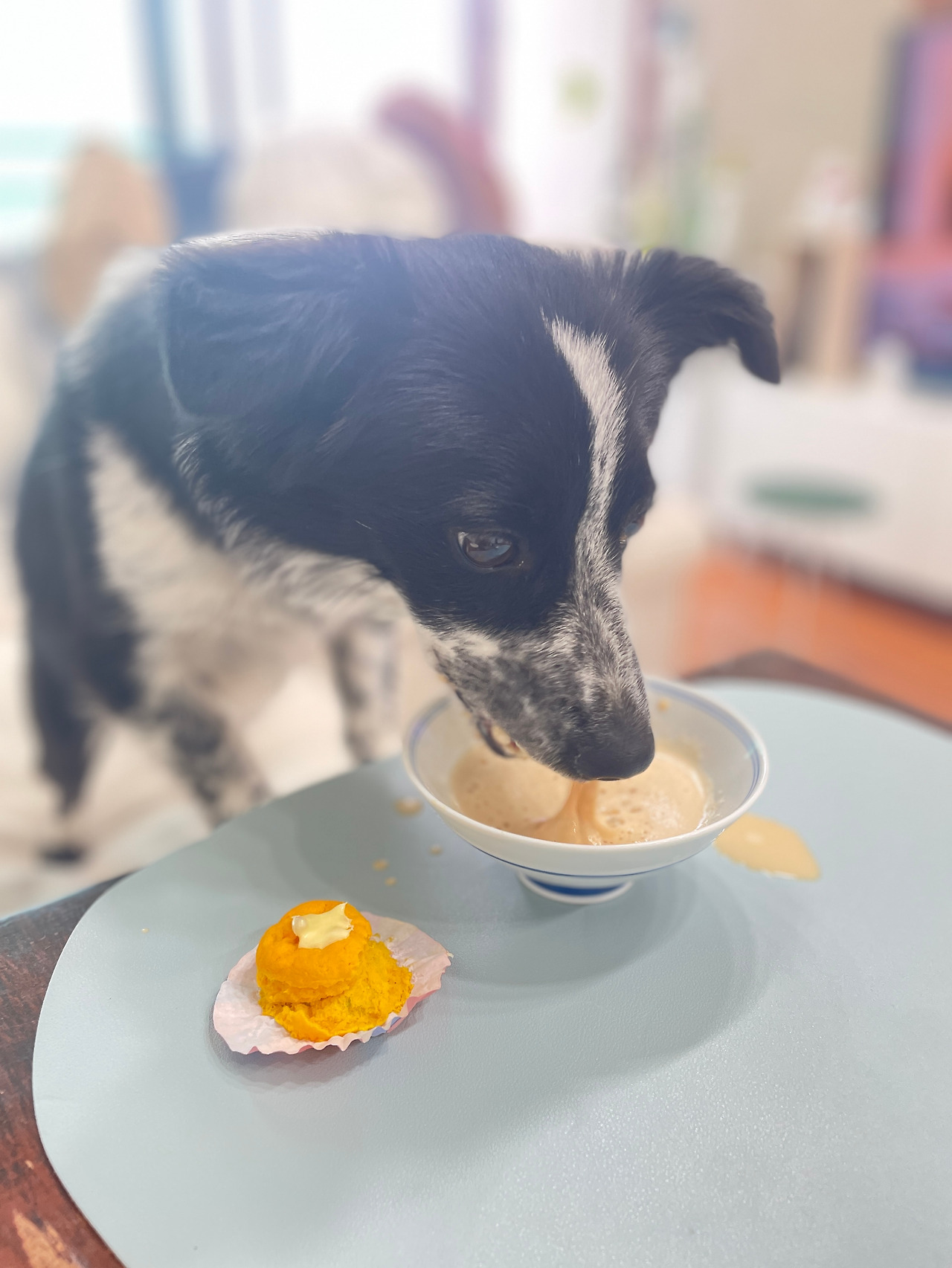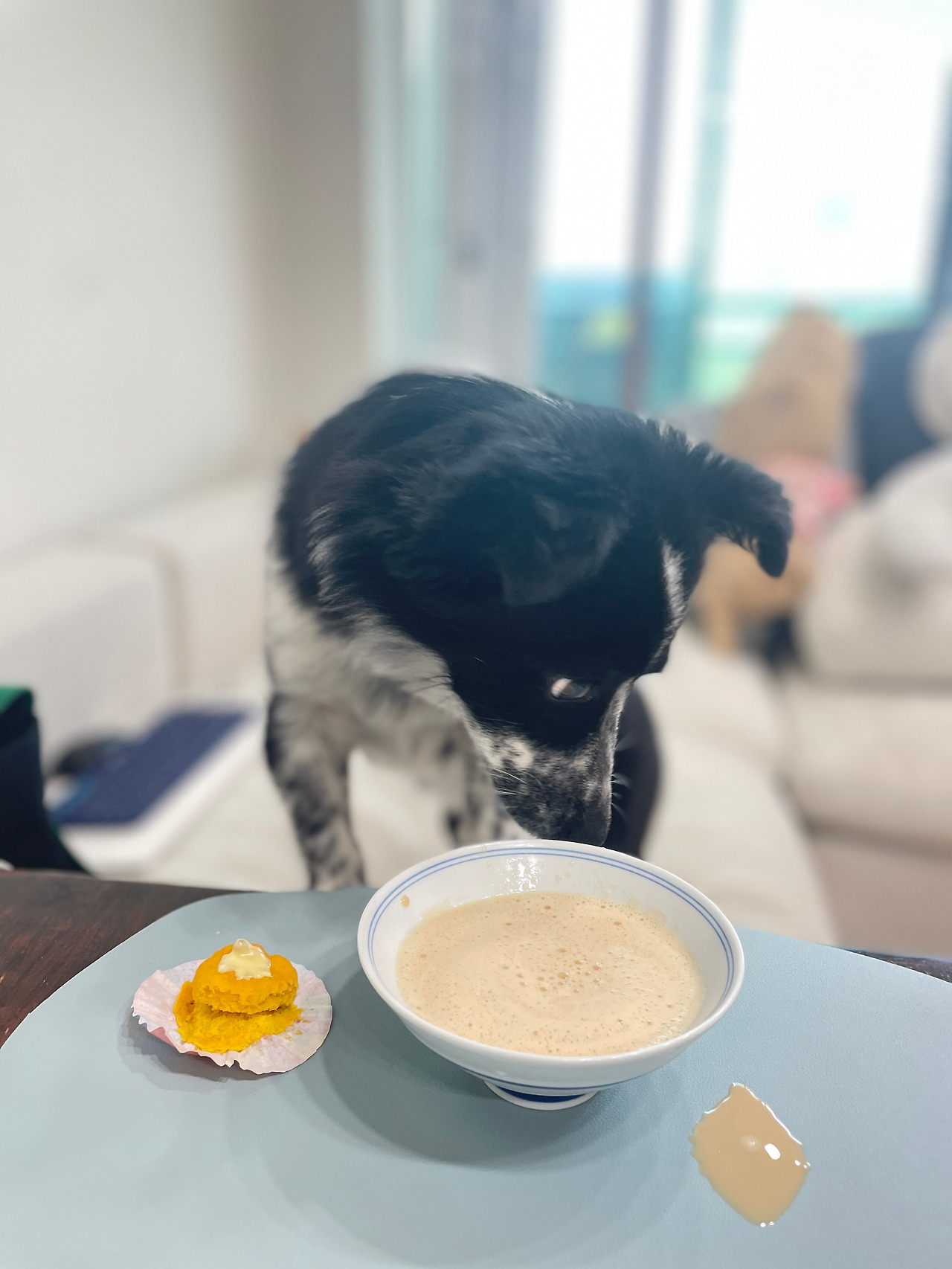 단호박 케이크의 경우 흑언니가 제일 많이 만든 간식인데 처음에는 종이컵 1개 분량만 만들었다가 나중에는 다이소에서 파는 제일 작은 머핀 컵을 이용해 대량생산해서 얼려두었다가 한 개씩 꺼내 주었다. 레시피는 유튜브에 강아지 단호박 케이크를 검색하면 많이 나오니 참고해서 만들면 좋다. 치즈 쿠키의 경우 아이 간식을 응용한 방법인데, 슬라이스 치즈를 전자렌인지에 20~30초 돌리면 부풀어 오르면서 바삭해진다. 0세 아이들을 위한 치즈의 경우 강아지 급여도 가능하니 간단하게 만들어 먹기 좋다. 마지막으로는 사람도 먹고 강아지도 먹을 수 있는 방법인데, 최근엔 그릭요거트 메이커가 많으니 요거트로 그릭요거트를 만들고 사람도 먹고, 강아지도 일부 급여하는 방식도 좋다.