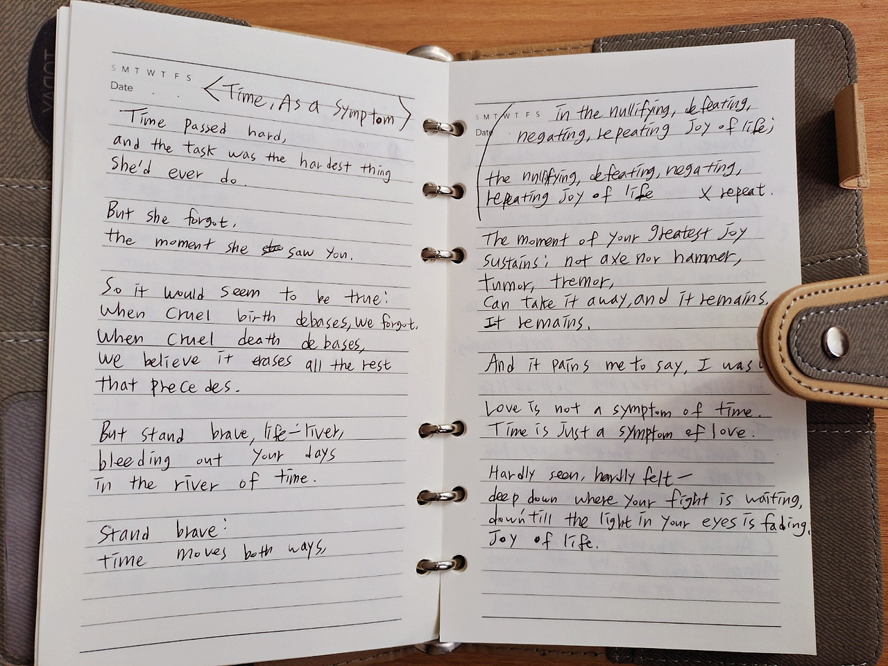 꼭 마음이 불안할 때가 아니라도, 좋은 글귀를 만나면 수첩에 한 자 한 자 눌러쓴다.