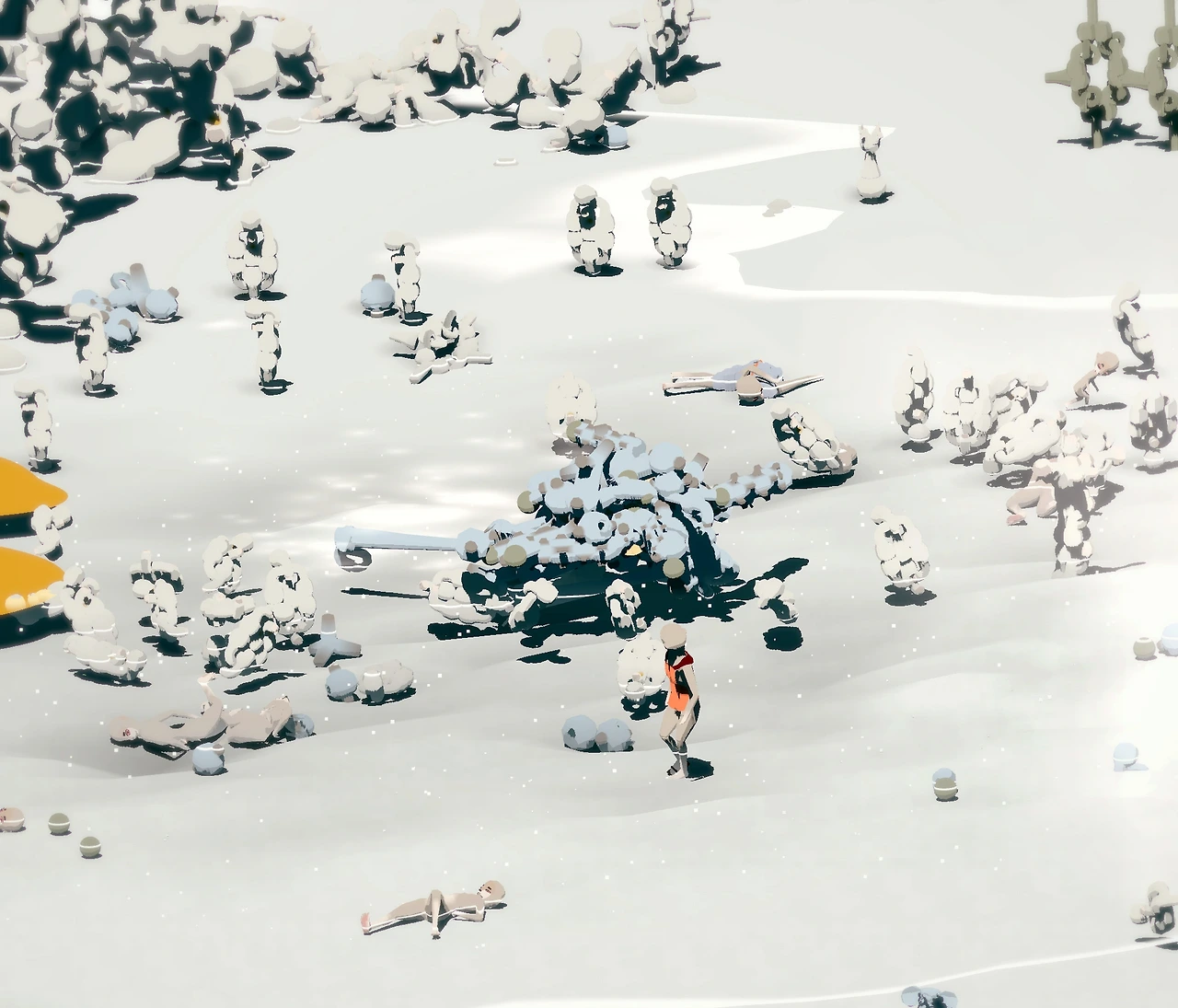 이안 쳉의 사절은 그가 구축한 세계관이 있고 그 세계 안에서 ‘사절(emissary)’이 주어진 임무를 수행하며 다른 대상과 환경에 비선형적으로 반응하며 끊임없이 변한다. <사절> 시리즈의 세상을 들여다보는 카메라 앵글 또한 쉼 없이 바뀌며 사절의 세상을 3인칭 시점, 그 세상에 속해 있지 않은 관찰자의 시점으로 보여준다. 작가의 세상 속 대상들은 서로 스치듯 만나 관계 맺고 그 사이의 새로운 데이터를 만들어 현재 이후의 미래에 새로운 움직임과 반응을 보여준다. 여기에서 예술가는 대상들이 서로 조응하는 방식과 방향은 정할 수 있지만 그 결과는 작가 또한 알지 못한다. <사절> 시리즈의 재생 시간이 무한(infinite)인 이유 또한 한번 일어난 일이 똑같이 다시 반복되지 않음을 뜻하기도 한다. 그리고 삶은 계속된다는 키아로스타미 감독의 영화처럼 매 순간 새로운 미래를 갱신하는 사절의 시간은 끝없이 나아가는 현실의 시간을 닮은 동시에 관람자와의 동일시를 방해해 그가 구축한 세상에서 한걸음 떨어져 보게 한다. 바로 세 개의 연작 모두 버드 아이 뷰(bird eye view)로 세상을 보여줘 전지적 관찰자이자 신(god)의 시점으로 보여주기 때문이다. 관람자에게 주어진 이런 시점은 몇 가지 측면에서 의미가 있다. 먼저, 마치 컴퓨터 게임인 심즈(Sims)와 같이 세계와 도시를 만드는 창조자의 태도를 가지게 해 준다는 것이다. 하지만 이 창조자는 관리자가 될 수는 없다. 마치 부동의 원동자처럼 관람자가 할 수 있는 것은 마치 다 알고 있었다는 듯 무정히 바라만 보는 것일 뿐이다. 인간의 양육은 부모로부터의 독립이 목적이다. <사절>또한 작가의 손에서 분리된 이후, 관객이 바라보는 가운데 관계들이 발생하며 매 순간 데이터가 쌓인다. 하지만 그 데이터들은 서사 전개에 목적 있는 영향을 미치지는 않는다. 관람자는 이해할 수 없는 캐릭터들의 움직임을 바라볼 뿐이다.