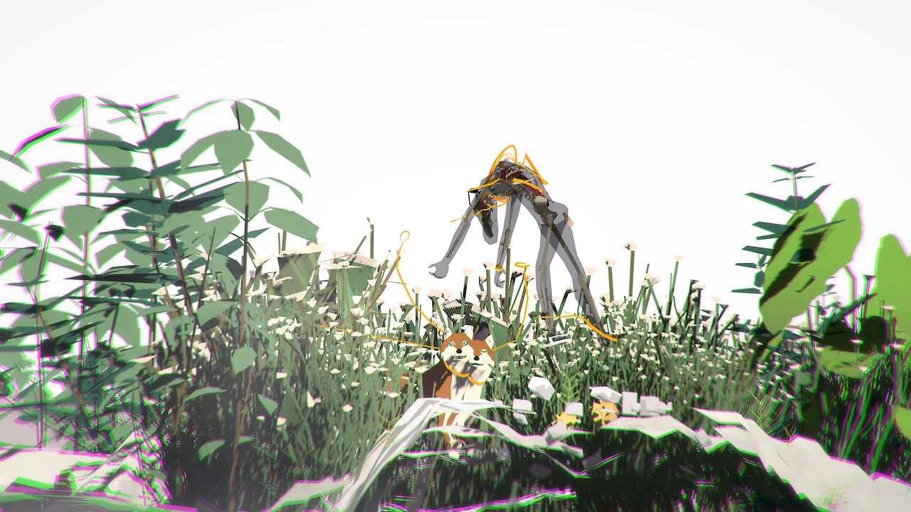이안 쳉(Ian Cheng)은 라이브 시뮬레이션(Live Simulations)이라는 그만의 미디어 형식을 통해 내러티브를 전달한다. 라이브 시뮬레이션은 게임 제작에 사용되는 유니티(Unity) 게임엔진과 인공지능(AI)을 연계해 가상 생태계를 만든다. 아래 세 가지 이미지들은 그의 대표작인 사절 삼부작(Emissaries trilogy, 2015-2017)인데 그 소개에 러닝타임이 infinite라고 쓰여 있다. 단순히 같은 영상의 반복이 아닌, 특정 알고리즘에 의해 작가가 최초로 생성한 가상공간 안에서 대상들이 서로 소통하고 관계를 만들고 그 안의 세상을 바꿔간다.