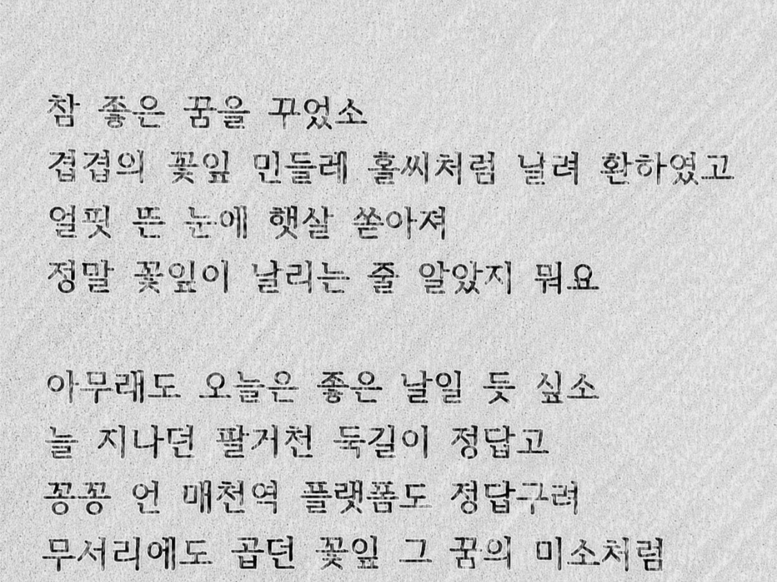 무서리에도 곱던 꽃잎 그 꿈의 미소처럼