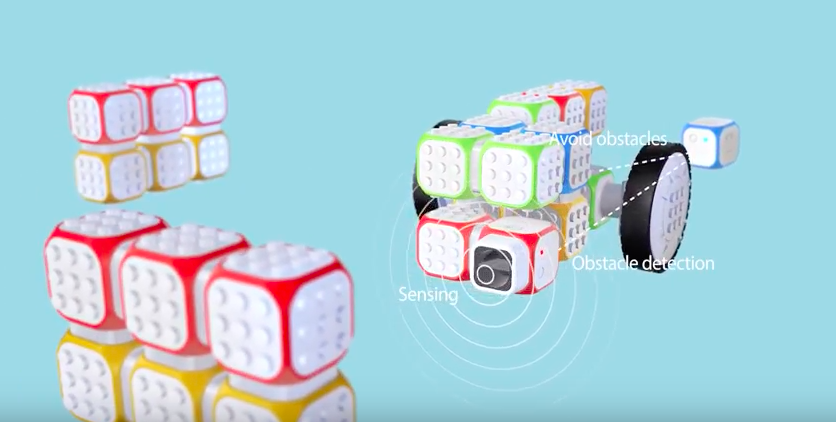 큐브로이드는 블록으로 이루어져 있는 하드웨어와 센서를 조립한 다음, 스크래치로 소프트웨어(프로그램)를 만들어 제어할 수 있습니다. 가장 큰 특징은 다른 코딩 교육용 레고들에 비해 조립과 조작이 쉽다는 것입니다.