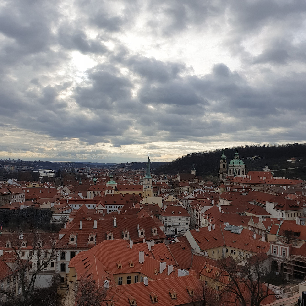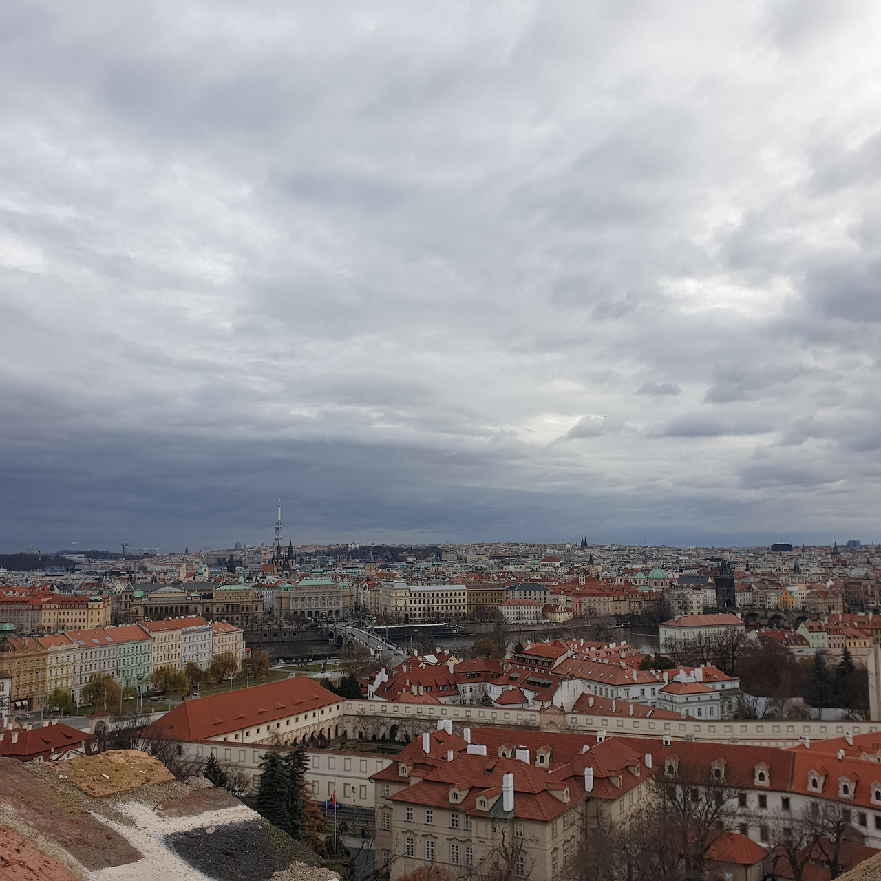 SNS를 보면 프라하의 붉은 지붕들이 다 보이게 인생 샷을 찍은걸 많이 볼 수 있다. 나도 한번 찍어보려 했으나 이야 정말 쉽지 않다. 일단 성벽이 너무 높다. "인터넷 보면 다들 잘 찍었던데 이걸 어떻게 찍는 거지?". 아무리 까치발들 들어도 내 상반신이 프라하 성벽을 넘어 붉은 지붕과 함께 찍힐 수가 없었다. "아니 여성분들도 SNS를 보면 다들 잘 찍었던데???" 아무리 성벽을 둘러봐도 내 키보다 작은 구역은 없어 보인다. 그냥 핸드폰만 머리 위로 올려 지붕 풍경만 찍기로 한다.