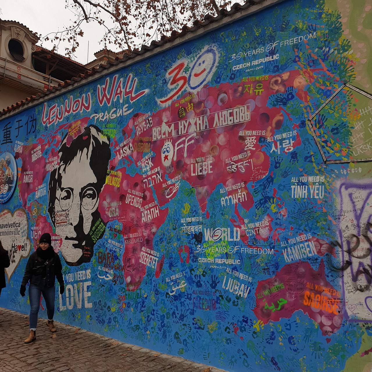 프란츠 카프카의 집을 나와 프라하의 레논 벽으로 향했다. 레논 벽의 레논은 영국의 유명 밴드 그룹 비틀즈의 그 존 레논이 맞다. 레논 벽은 프랑스 대사관 바로 옆에 있는데 자유분방함을 상징하는듯한 그라피티들이 빼곡히 그려져 있다. 레논 벽은 원래 1960년대 이후 체코인들의 사랑과 정권에 대해 저항하는 글들을 적어놓는 벽이었다. 그러다 1980년 쯔음 존 레논이 피살되자 익명의 한 화가가 벽에 레논의 초상화와 그의 노래 가사를 적었다. 이후 이 레논 벽은 체코의 민주화 운동 이후 자유와 정치 투쟁 등과 같은 자유주의 표현을 표출하는 벽으로 자리 잡았다.