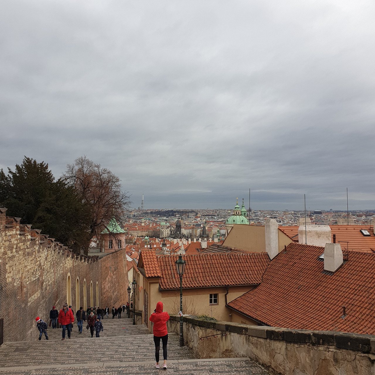 성 내부 투어를 모두 마치고 시내로 내려가기로 한다. 이번엔 올라왔던 길과는 반대로 앞 쪽 길로 내려가기로 한다. 거기에 바로 프라하성 인생 포토존이 있기 때문이다. 그리고 까를교 까지 건너서 트램을 타고 호텔로 돌아가 밤에 다시 오기로 했다. 프라하 투어의 진미는 바로 야경이니까. 프라하성의 야경은 유럽 3대 야경중 하나로 뽑힌다.