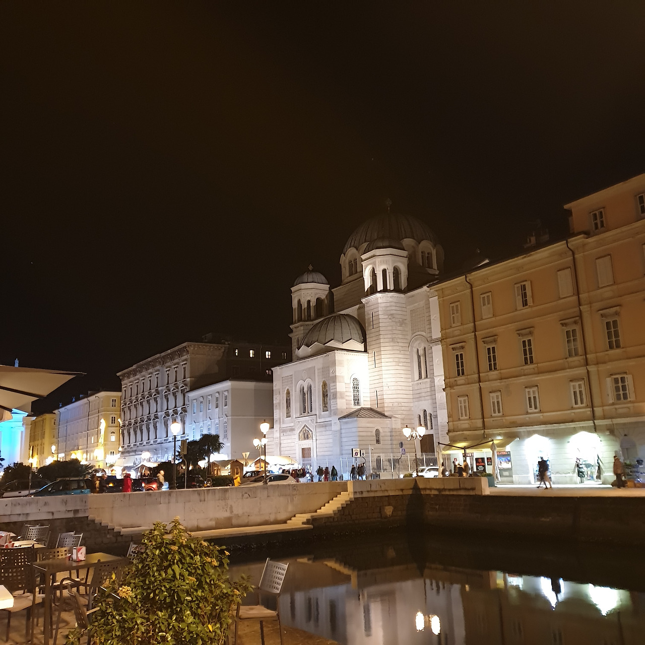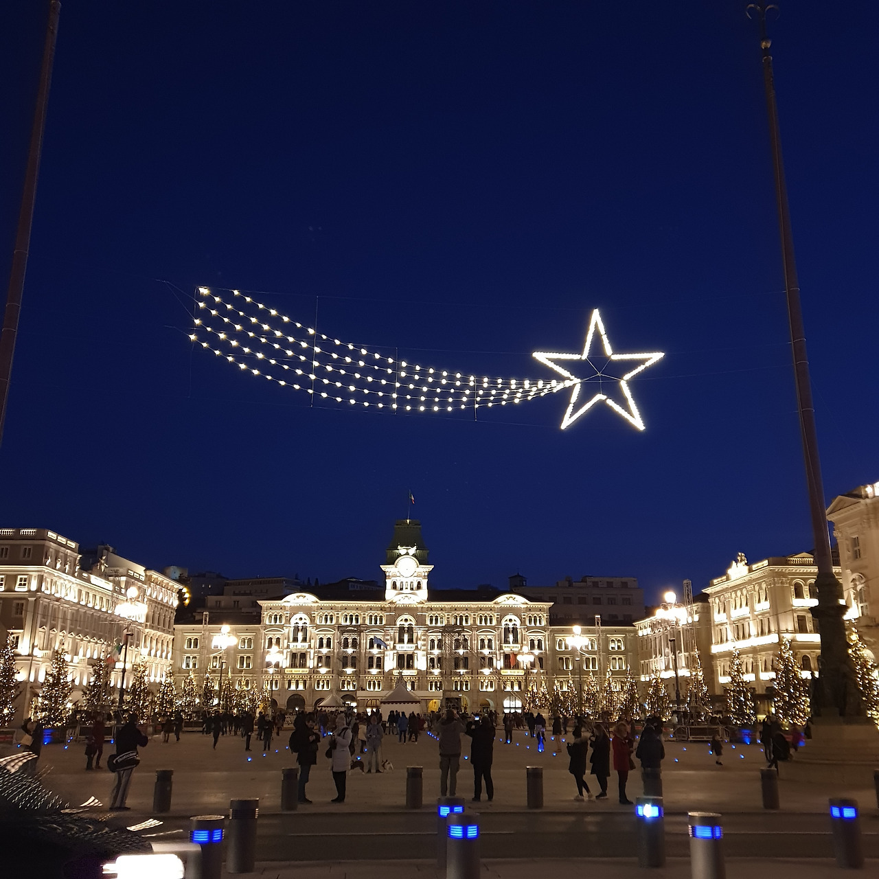 노을이 다 지자 다시 트리에스테 시청으로 넘어왔다. 해가지자 거리는 밝은 불빛들로 채워졌다. 이게 또 다른 유럽 도시와는 다르다. 보통 유럽의 전등들은 오렌지빛의 약간 어두운 빛인데 여기는 한국처럼 밝은 빛으로 이루어져 있다. 이때는 크리스마스가 끝난 뒤였지만 아직 크리스마스트리가 시청 광장에 세워져 있었다.