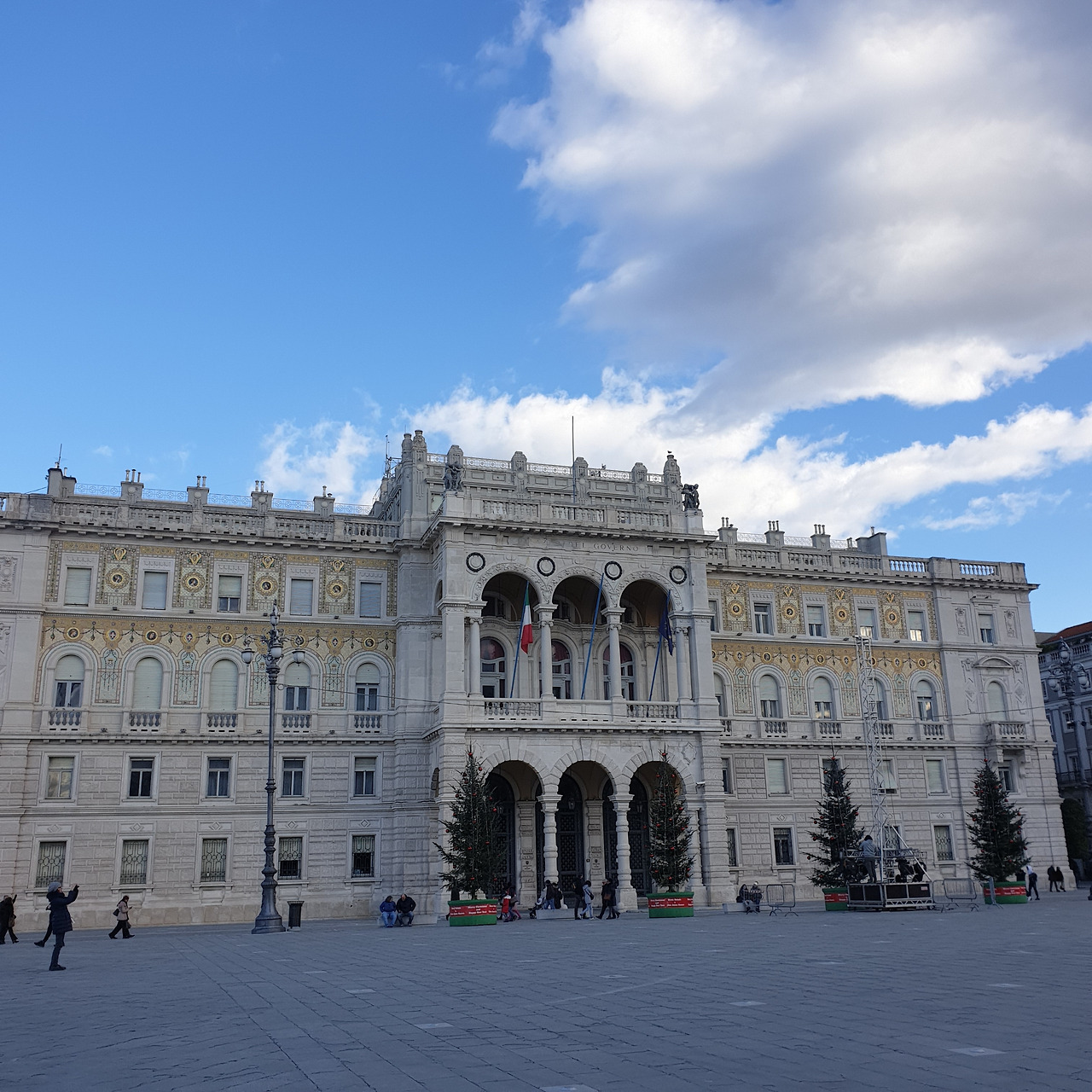건물들은 대체로 깔끔할 뿐만 아니라 전체적으로 웅장하다. 시청 건물만 봐도 알 수 있듯이 그리스 로마 신화의 신전을 연상시키는 사각형 건물에 큼직큼직한 기둥이 세워져 있다. 베이직 색의 톤에 금태를 두른 장식들도 웅장함을 더하고 있다. 이런 비슷한 건물 스타일은 벨기에 브뤼셀에서 찾아볼 수 있는데 브뤼셀의 시청은 시커멓게 때가 껴 좀 더 오래된 느낌인 반면 트리에스테 시청은 전혀 그렇지 않다.