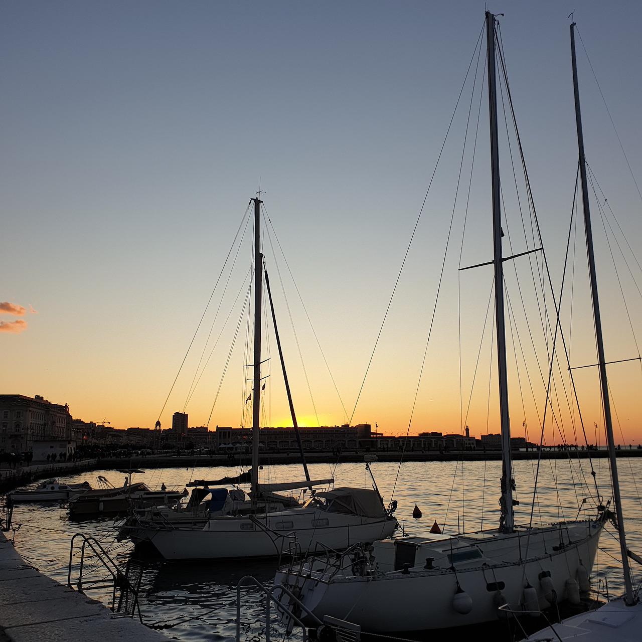 트리에스테에 도착하니 짠 바다 향기가 코를 자극했다. 바닷가 쪽으로 가보니 넘실거리는 바닷물과 선착장에 놓여있는 요트들이 즐비했다. 위치상 트리에스테는 부츠 모양의 이탈리아 반도가 아닌 반도 밖에, 엄밀히 말하면 아드리아해를 사이에 두고 반도 건너편에 위치해있다. 고로 트리에스테의 바다는 서쪽을 향하고 있다. 이 말은 즉 바다를 보며 노을을 구경할 수 있다. 트리에스테는 항구 도시다. 이탈리아 바다라고 하면 우린 할리우드 스타들이 휴양을 가는 이탈리아의 휴양지를 생각한다. 이와는 다르게 트리에스테는 신성로마제국 시대부터 자유도시로 발전돼온 도시다. 최근에는 중국이 일대일로 사업을 위해 투자하고 있다는 소문도 있지만 여기에 묵는 동안 한국인을 포함한 동양인을 본 적이 없다. 아직까진 여행지로서, 비즈니스 도시로서 이방인들이 모이진 않는 거 같다. 베네치아에서 트리에스테는 1시간도 걸리지 않는다. 베네치아의 수많은 인파에 물렸다면 트리에스테로 방향을 틀어보는 것도 좋은 여행 방법인 거 같다.