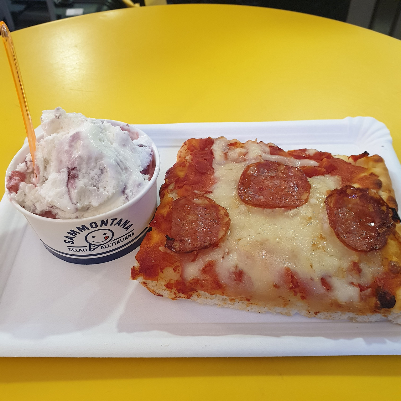 젤라토를 사들고 바로 옆에 조각 피자 가게로 들어갔다. 한판을 다 시키고 싶었지만 양이 너무 많아 일단 페페로니랑 버섯피자 한 조각씩만 주문했다. 피자도 나라마다 특징이 다 다른 것을 아시는가. 미국 피자는 굉장히 짜고 얇은 반면 한국 피자는 적당한 두께에 토핑이 많이 얹어져 있고 빵 테두리 안에는 고구마를 뿌리든 치즈를 넣든 뭔가 들어가 있는 게 특징이다. 반면 이 피자는 내가 먹었던 피자 중 가장 두꺼웠다. 이게 두꺼워서 일반 빵을 먹듯 퍽퍽한 건 아닌지 의심이 갈 정도로. 맛은 페페로니랑 버섯 둘 다 의외로 담백한 편! 특징은 토마토와 바질향이 굉장히 진하다.