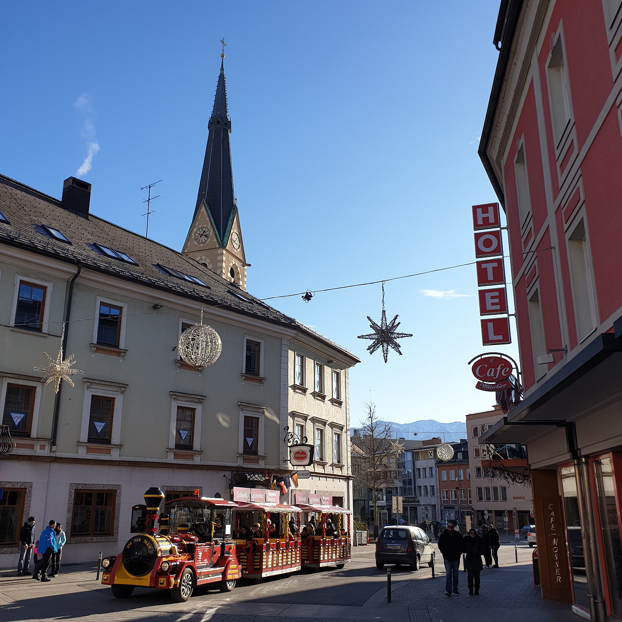 오스트리아 필라흐에 도착했다! 알프스 중턱에 지어진 도시라 맑은 하늘과 공기가 2시간 동안 기차 속에서 찌부러져 있던 내 몸을 깨워줬다. 내 마음을 안정시키는 저 독일스러운 건물들! 이제야 독일어권에 들어온 게 실감이 났다. 필라흐(Villach)는 오스트리아의 관광도시다. 연중 내내 다양한 페스티벌이 열린다고 한다. 도심 안으로 들어가자 장난감 같은 기차가 트램 대신 운행하고 있었다. 유럽인들은 겨울 휴양을 알프스에 스키를 타러 오는데 도심지인 여기 필라흐에 숙소를 잡고 열차를 타고 스키장으로 간다고 한다.