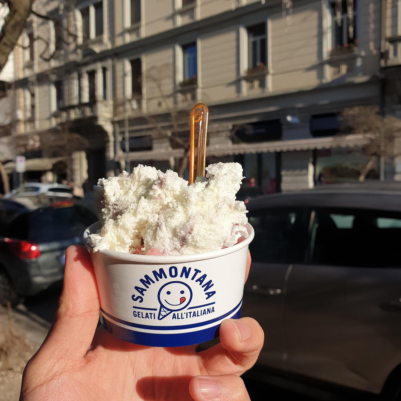 아침에 트리에스테에서 오렌지주스랑 크루아상밖에 못 먹고 왔기 때문에 역에서 나오자마자 젤라토 가게부터 찾았다. 겨울이어서 팔지 않을까 걱정했는데 운이 좋게도 중앙역 바로 앞에 젤라토 전문 가게가 있다. 쫀듯쫀듯한 이탈리아 원조 아이스크림! 가격도 한 컵에 1.5유로로 딱 먹기 적당했다.