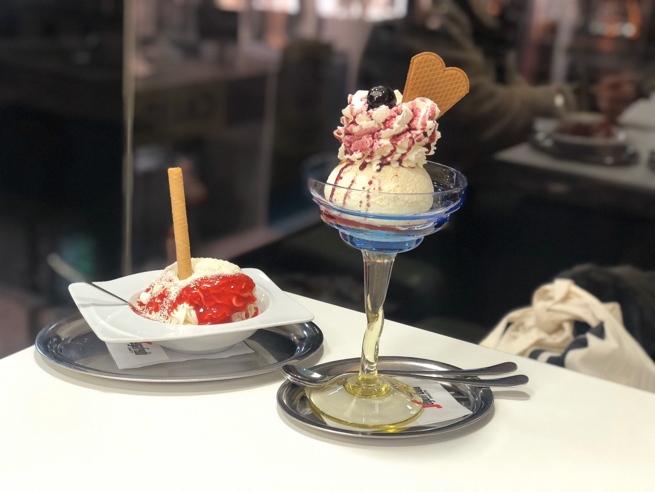 너무 피곤해 카페에 들어오자마자 메뉴 가장 뒷면에 있는 아이스크림 2개를 시켰다. 아이스크림 비주얼은 그럴듯했지만 내용물은 가히 충격적이었다. 아무리 피곤하더라도 세부 메뉴를 읽어봤어야 됐는데... 아이스크림을 떠먹자마자 달콤하면서도 어딘가 알싸한 느낌이 훅 들어왔다. 어? 이거 어디서 먹어본 맛인데? 초코향 같기도 한데 뭔가 혀끝이 아려오고, 몸이 따뜻해지는 이 느낌. 맞다, 저 예쁜 아이스크림 안에 술이 들어가 있었다. 술은 잭다니엘 허니인 듯했다. 쩐지 어디서 많이 먹어본 맛이 더라니... 그렇게 아이스크림과 함께 40도짜리 위스키도 맛보게 되었다. 덕분에 밤의 크리스마스 마켓도 감성적으로 구경할 수 있게 됐다.