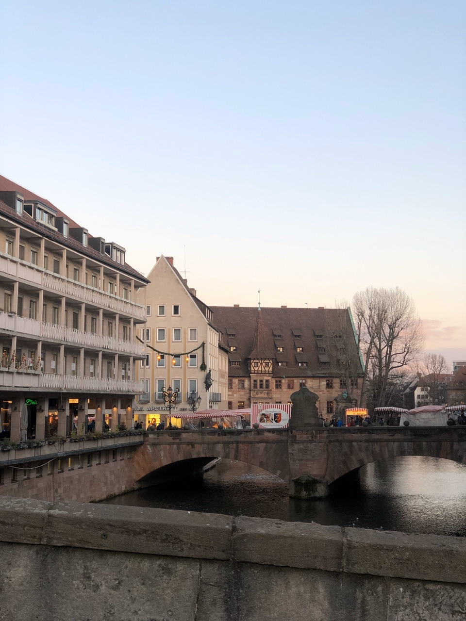 시장 밖으로 나와 구시가지를 걷다 강변을 바라봤다. 뉘른베르크는 강 바로 옆으로 주택과 아파트들이 들어서있었다. 보통은 강에서 조금 떨어져 지을 만도 한데. 그 모습이 마치 프랑스 스트라스부르 같기도 했다. 한참을 걷다 지쳐 해가 완벽히 질 때를 기다리기 위해 주변 카페에 들어가기로 했다.