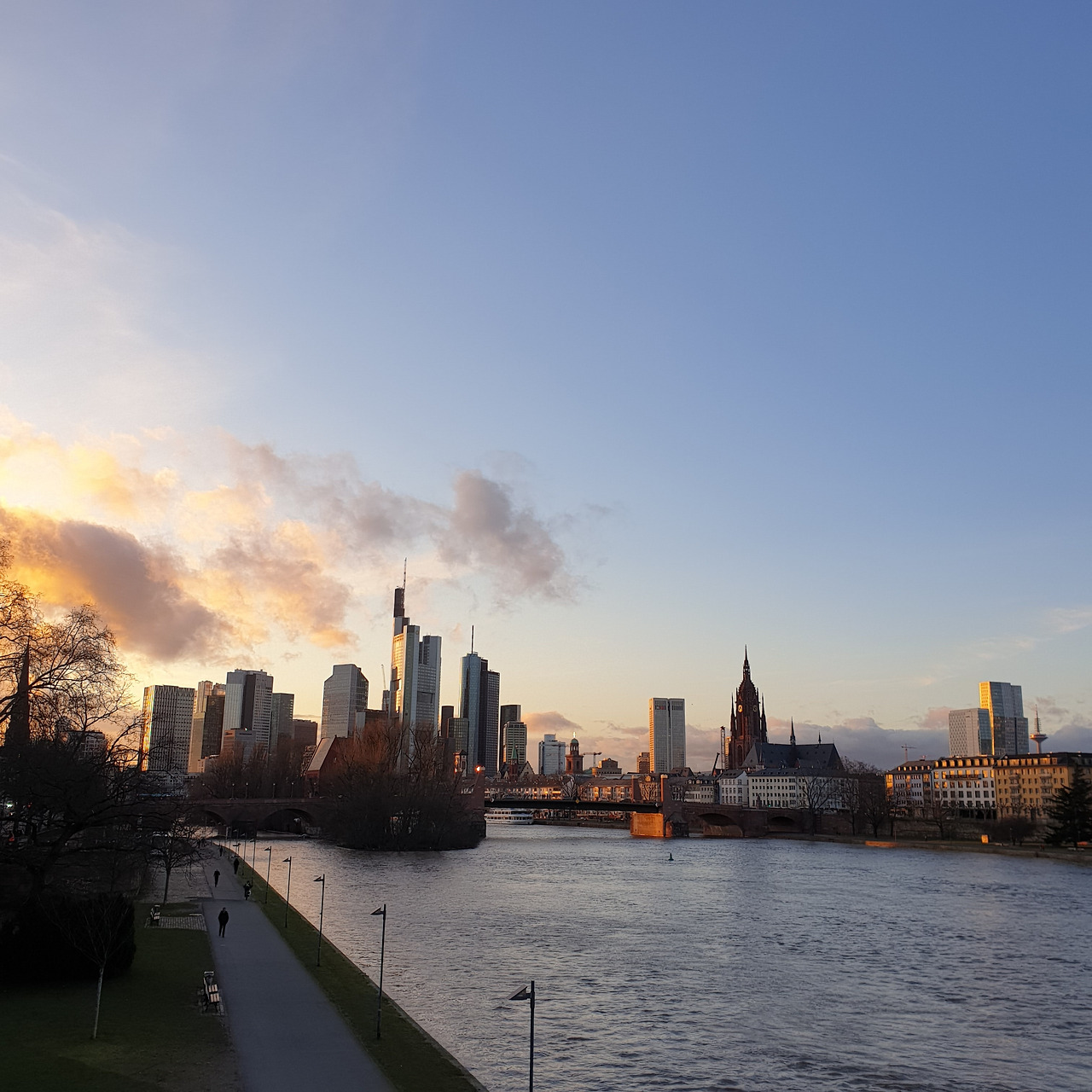 빌딩 너머로 지는 노을과 풍경이 낯설다. 원래 높은 빌딩들만 모여있는 현대 도시 거나, 낮은 건물들만 있는 오래된 도시거나 인데. 프랑크푸르트는 이 두 개의 도시가 한 풍경에 합쳐져 있다. 그 풍경을 보니 또 이런저런 생각이 든다. "아 내가 또 새로운 곳에 와있구나....". 낯설고 새로운 것을 볼 수 있고, 이런 경험을 할 수 있다는 것에 감사하면서 호텔로 돌아왔다. 다음 여행지에서 볼 다른 풍경을 기대하면서.