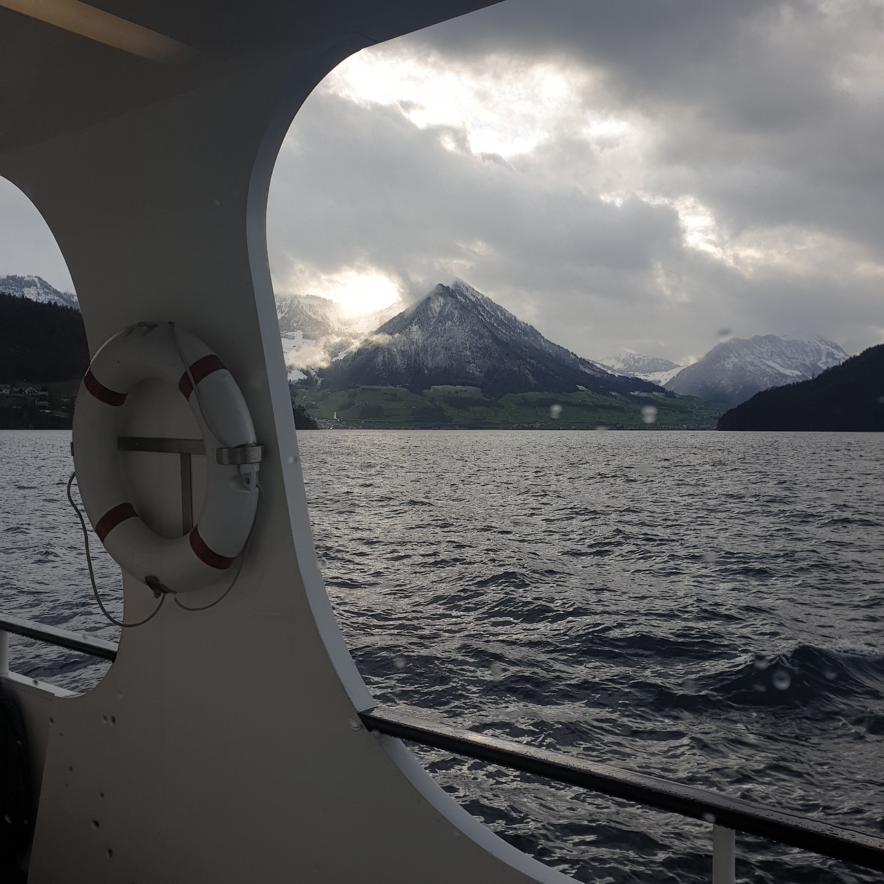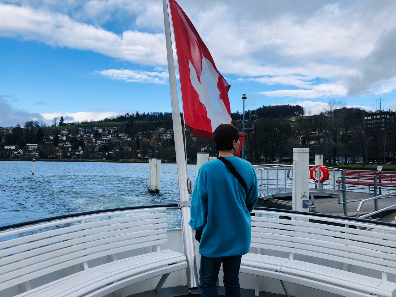 점심을 먹고 이제 비츠나우로 가기로 했다. 비츠나우는 무조건 루체른에서 배를 타고 가야 하는데 약 2시간 정도 걸린다. 배에 올라타자 후미에 커다란 스위스 깃발이 휘날리고 있었다. 한국에서 조차도 배를 타본 적이 별로 없었기 때문에 멀미가 걱정됐지만, 출발을 알리는 커다란 소리와 함께 내 걱정도 눈 녹듯이 사라졌다.
