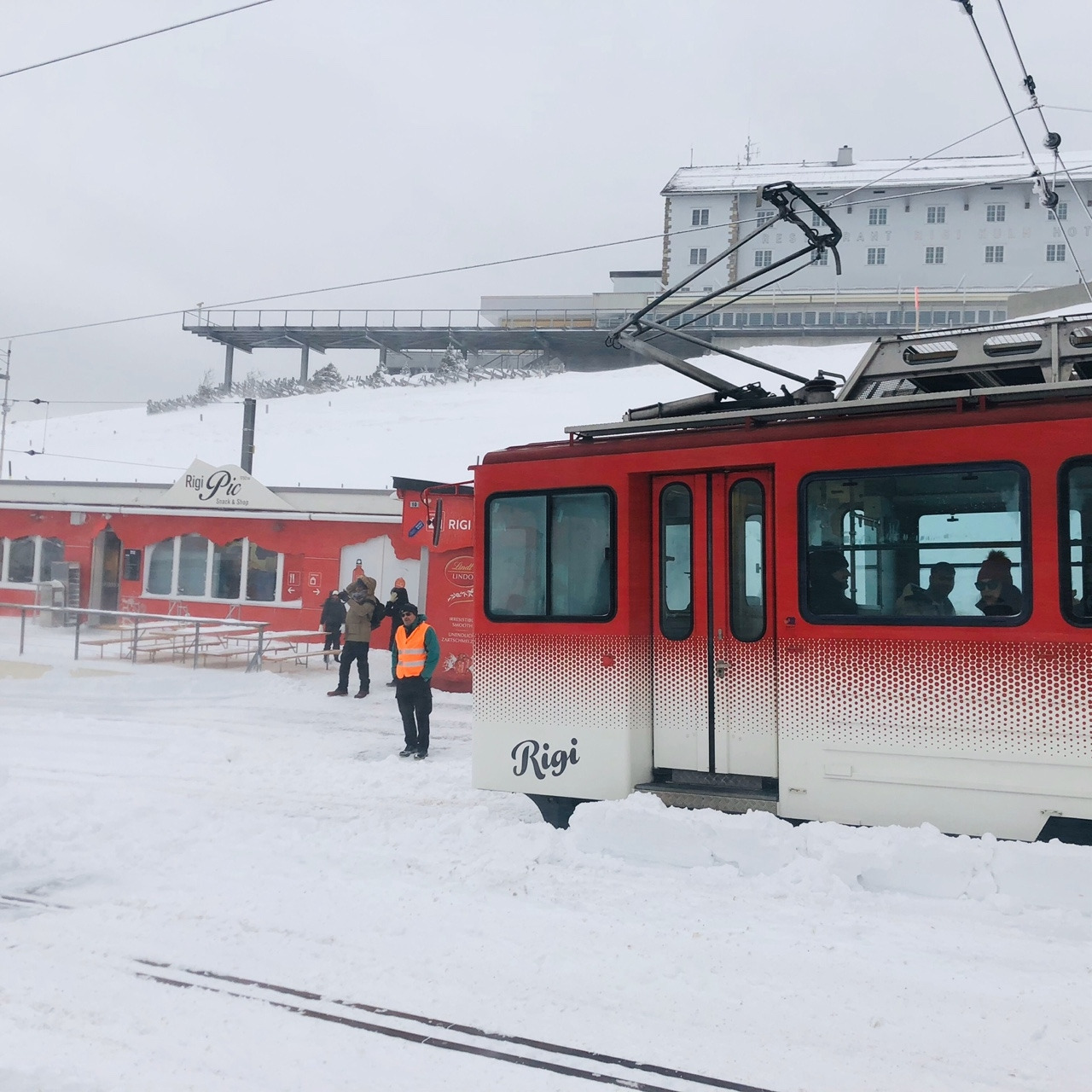 비츠나우에서 내려 리기산 정상으로 가는 산악열차에 올라탔다. 산악열차는 30분마다 한 대씩 있는데 산을 올라가는 만큼 그 경사가 어마어마하다. 홍콩의 야경을 보러 가는 그 언덕보다 더 심하다. 산을 올라갈수록 눈이 없는 평원에서 점점 눈이 쌓여있는 설원 같은 풍경으로 변하는데 마치 게임에서 포털을 타면 맵이 완전히 바뀌는듯한 느낌이다.