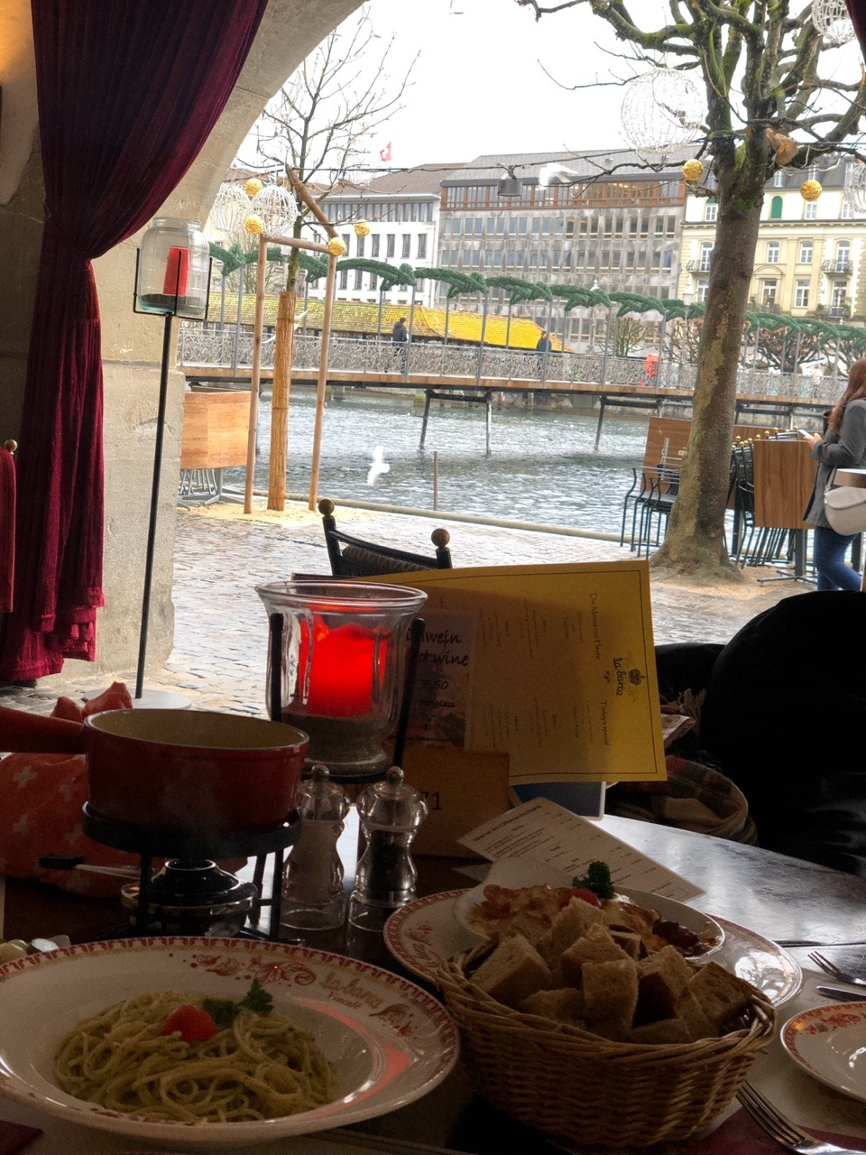 치즈 퐁듀도 맛있지만 루체른 호를 구경하며 먹는 재미도 쏠쏠하다. 한겨울이지만 야외에서 먹는 것이 못 버틸 정도로 춥지는 않다. 유럽은 한겨울에도 야외에서 먹을 수 있게 두꺼운 담요와 엄청 큰 히터를 틀어주기 때문! 게다가 가끔씩 불어오는 호수 바람이 따뜻하게 녹인 치즈 퐁듀를 더 맛있게 느껴지게 했다.