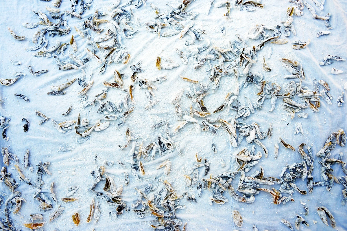 어머니! 오늘은 또 무엇을 부친대요? 별거 아닙니다. 산에 다녀오셨어요? 어제 장날이라 장에서 볶아온 돼지감자랑 망개열매 좀 땄구먼요. 망개열매요? 그것도 약으로 쓰는 거에요? 신선이 하늘에 냉겨놓은 양식이라 하여 선유량이라고 안하던가베요, 죽게 된 사람이 산에서 살아서 돌아왔다 하여 산구래라고도 하지요. 아, 그거! 어린 시절 우리들은 그것을 망개라고 불렀는데. 맞아요. 망개. 잎사귀로 송편을 싸서 쪄먹기도 했지.