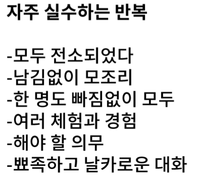 - 신조어, 유행어, 줄임말 등을 가급적 쓰지 말 것
