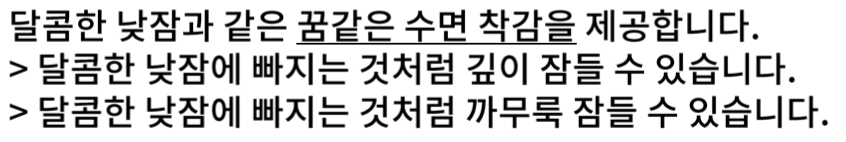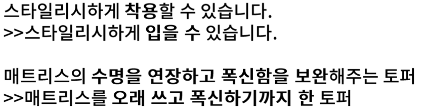 ex) MD가 추천하는, 연예인 00도 사용하는 00회사 전 직원이 애용하는 등